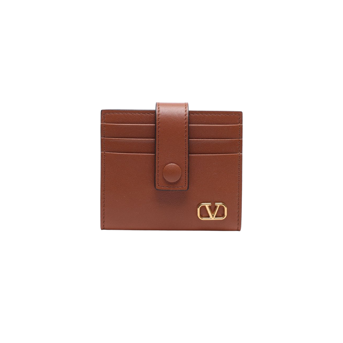 발렌티노 브이로고 시그니쳐 카프스킨 카드 홀더 브라운