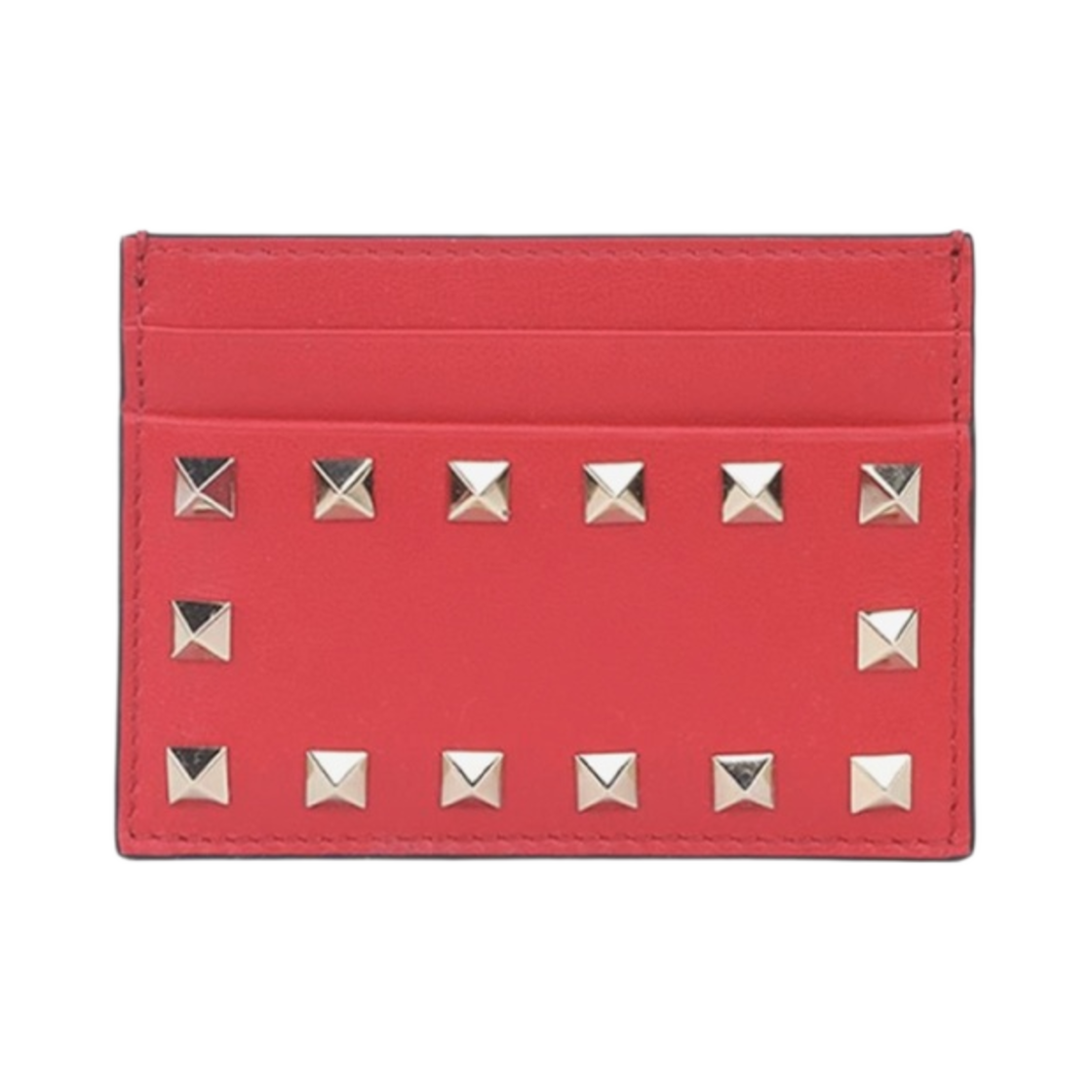 발렌티노 락스터드 카드 홀더 루즈 퓌르