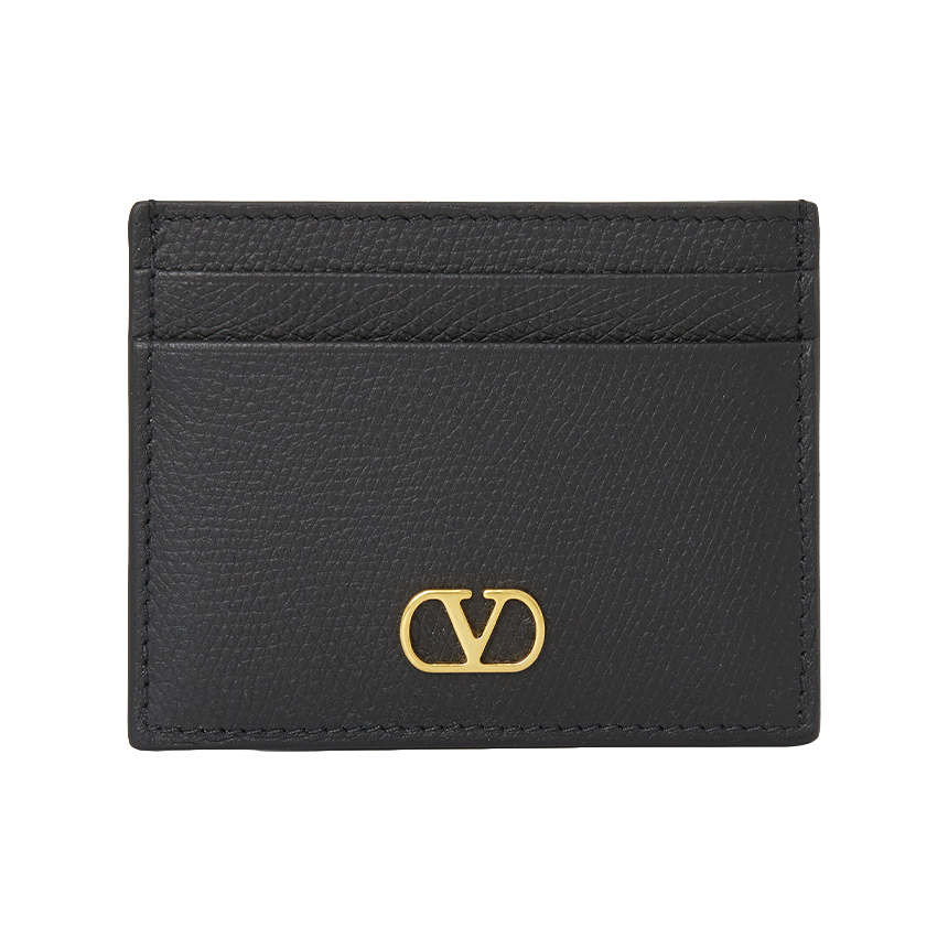 발렌티노 브이로고 시그니쳐 그레이니 카프스킨 카드 홀더 블랙
