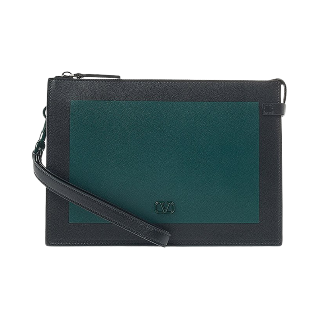 발렌티노 브이로고 시그니쳐 투톤 인타르시아 파우치 블랙 칼리지 그린
