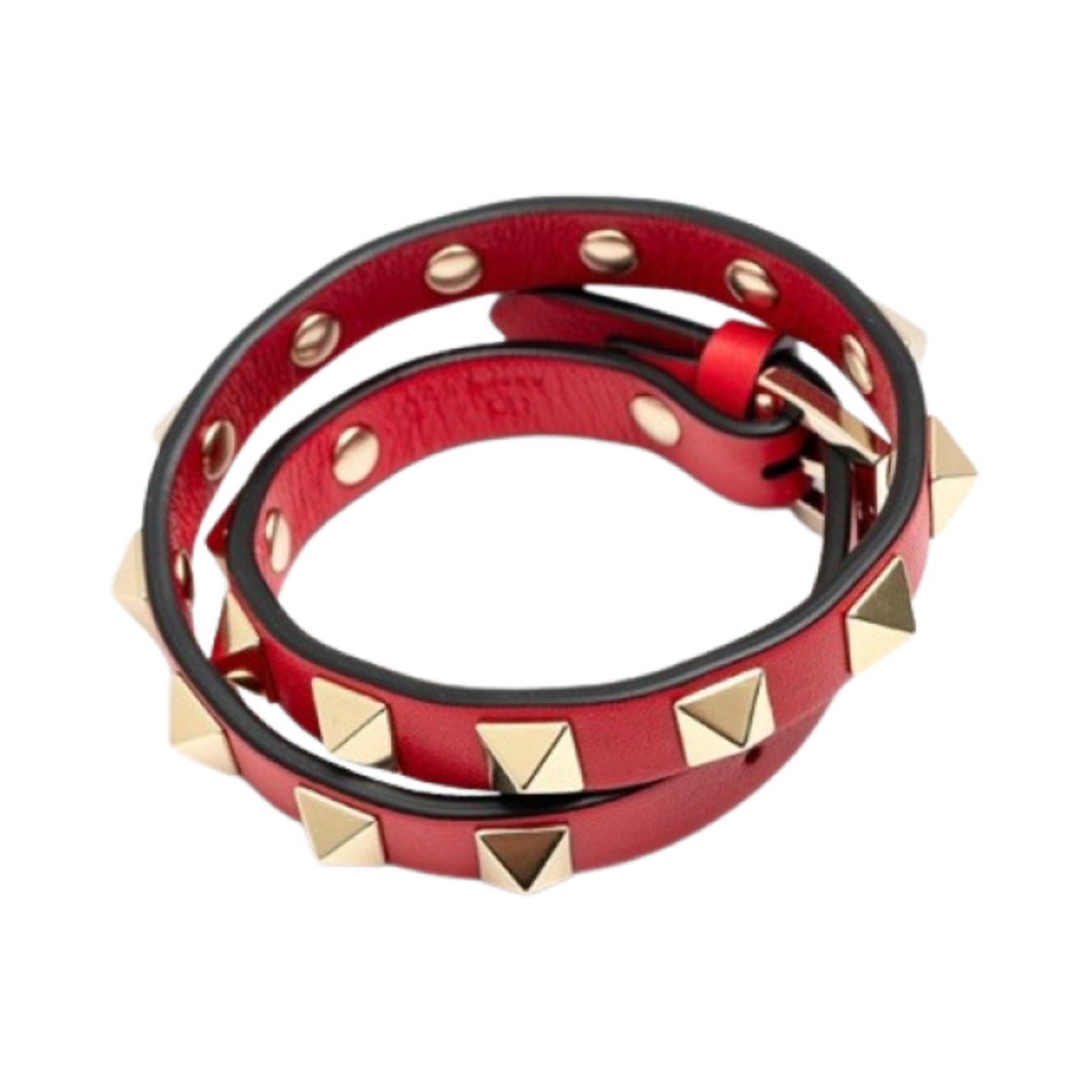 (W) 발렌티노 락스터드 레더 더블 스트랩 브레이슬릿 루즈 퓌르