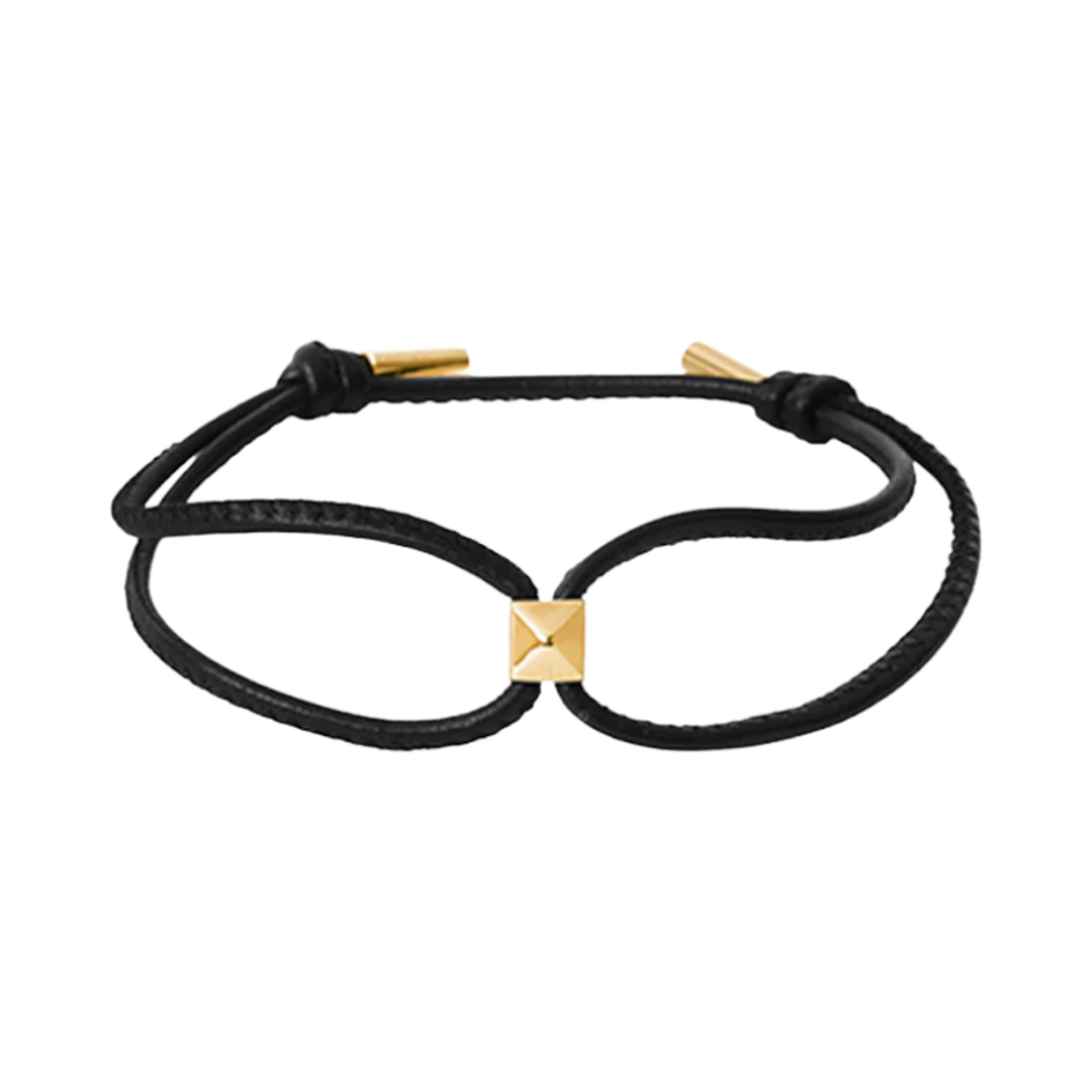 발렌티노 락스터드 레더 브레이슬릿 블랙 골드