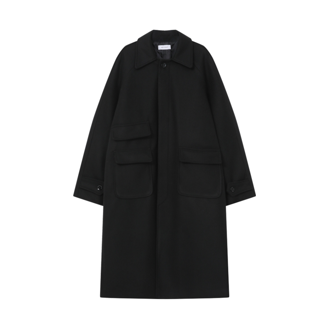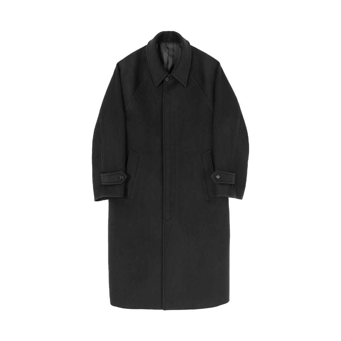 커스텀멜로우 울 린넨 발마칸 코트 블랙