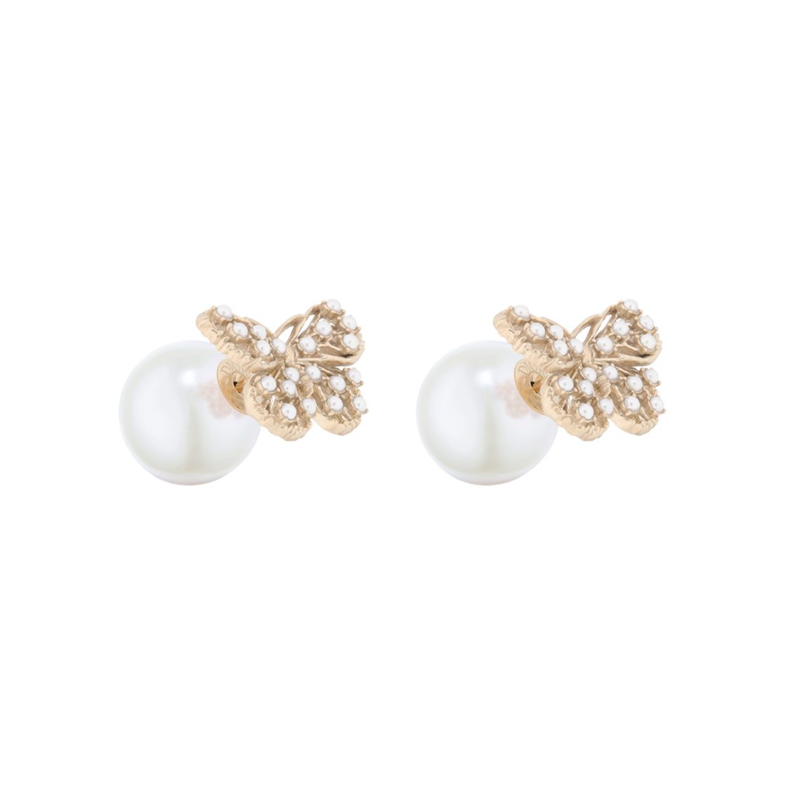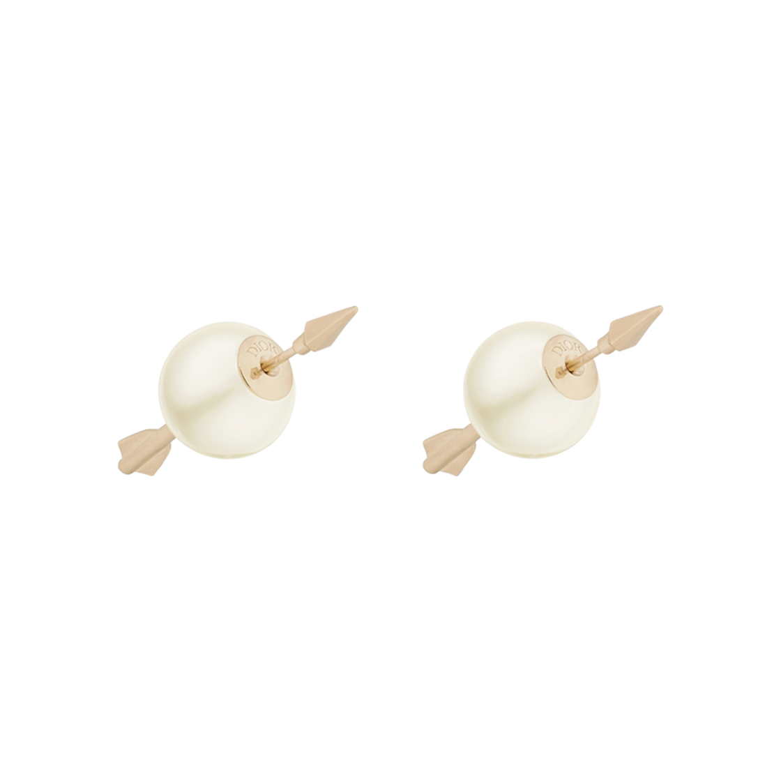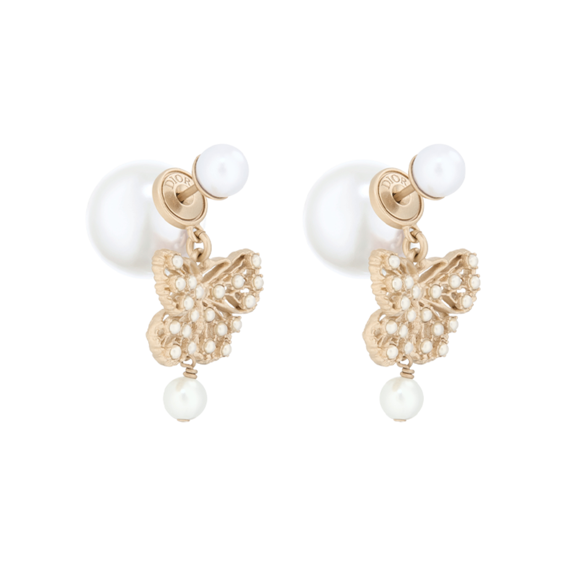 (W) 디올 트리발 이어링 매트 골드 피니쉬 메탈 화이트 레진 펄 앤 실버톤 크리스탈