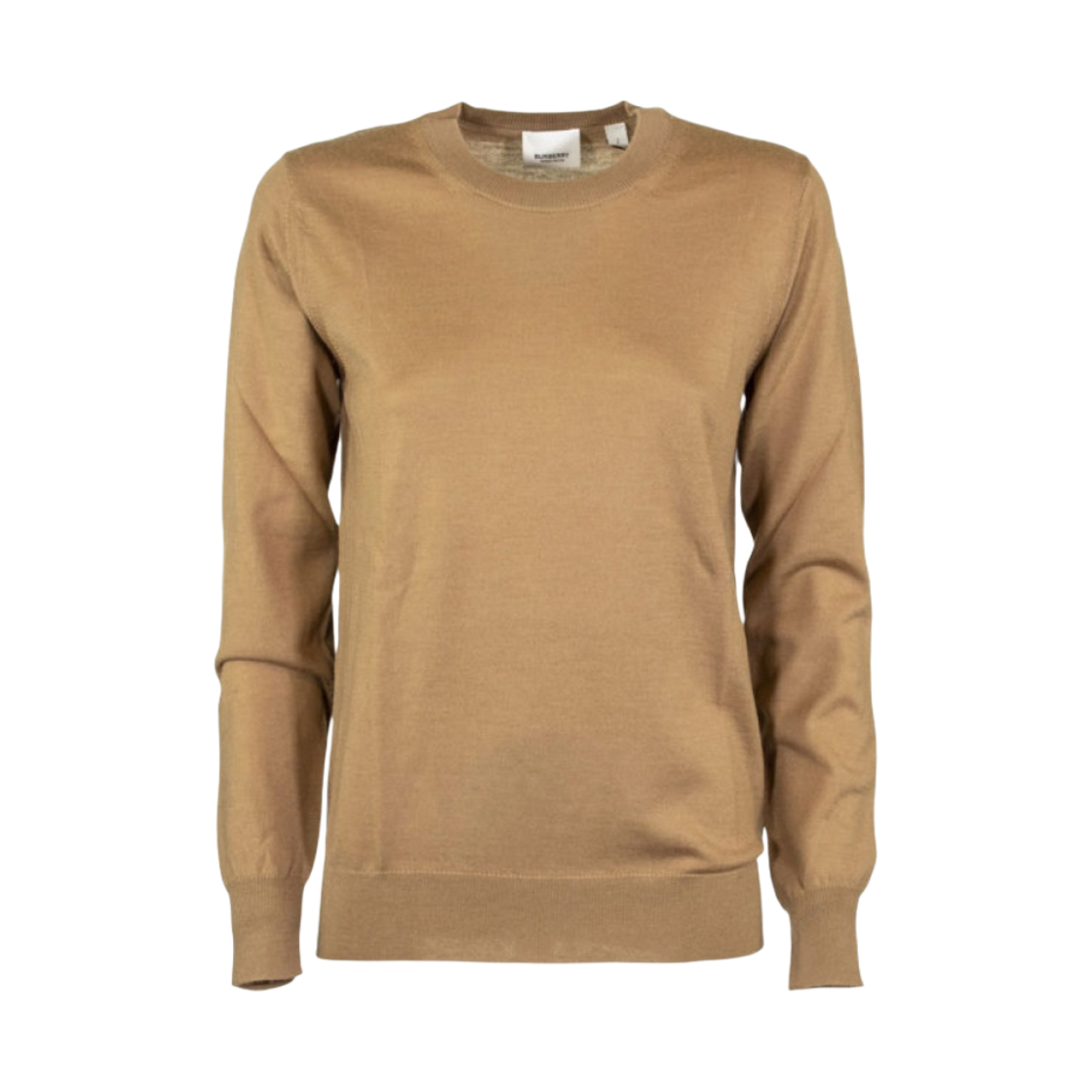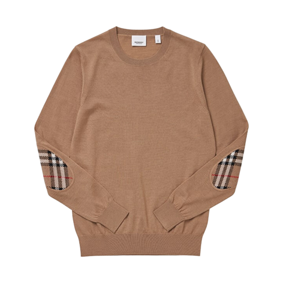 (W) 버버리 뱀프톤 체크 패치 메리노 울 니트 카멜