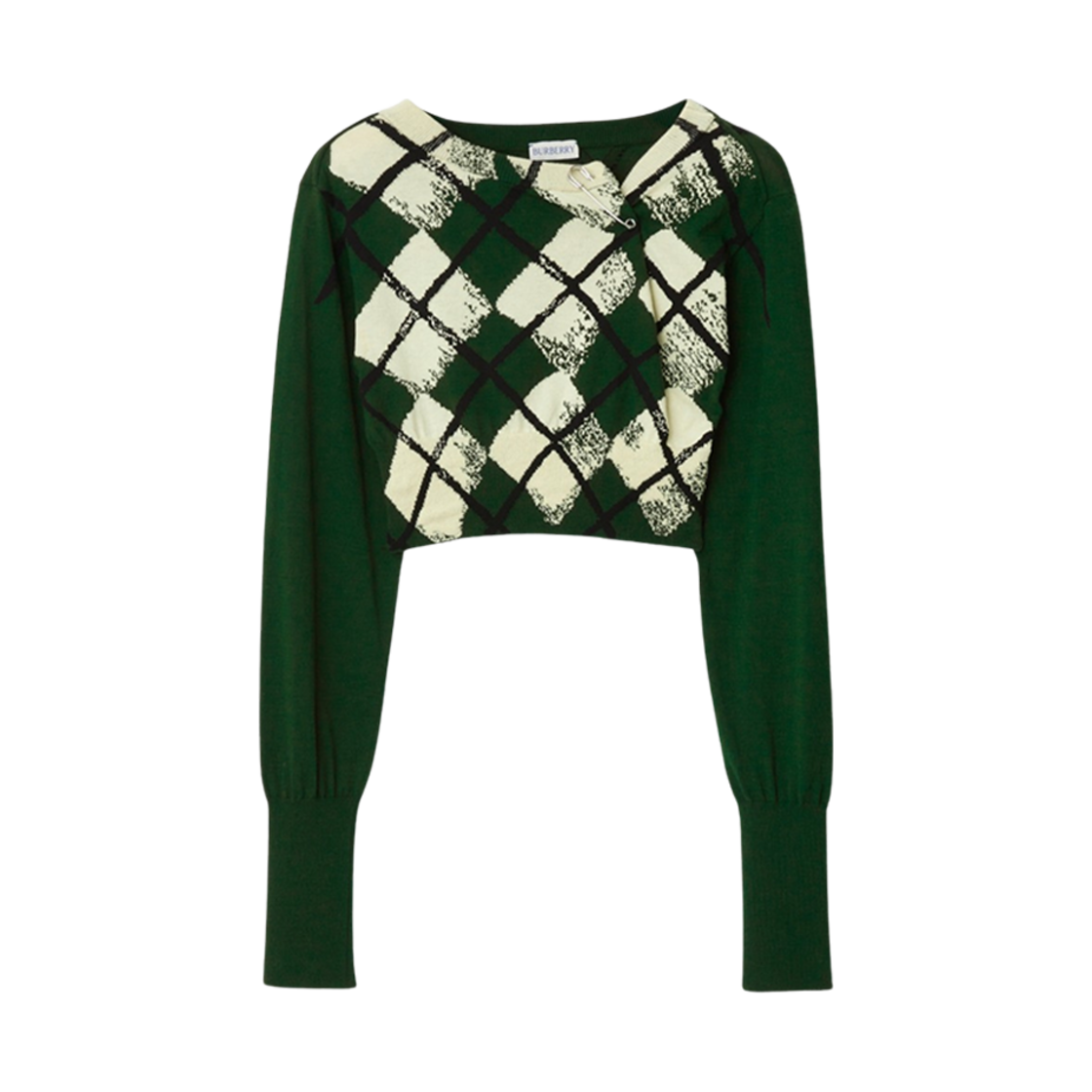(W) 버버리 크롭 아가일 코튼 스웨터 아이비