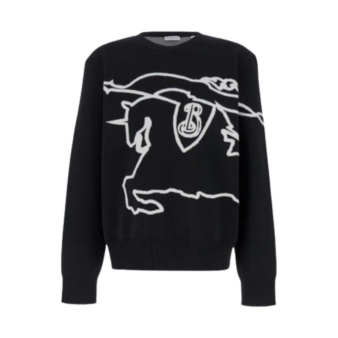(W) 버버리 로고 울 코튼 자카드 오버사이즈 스웨터 블랙