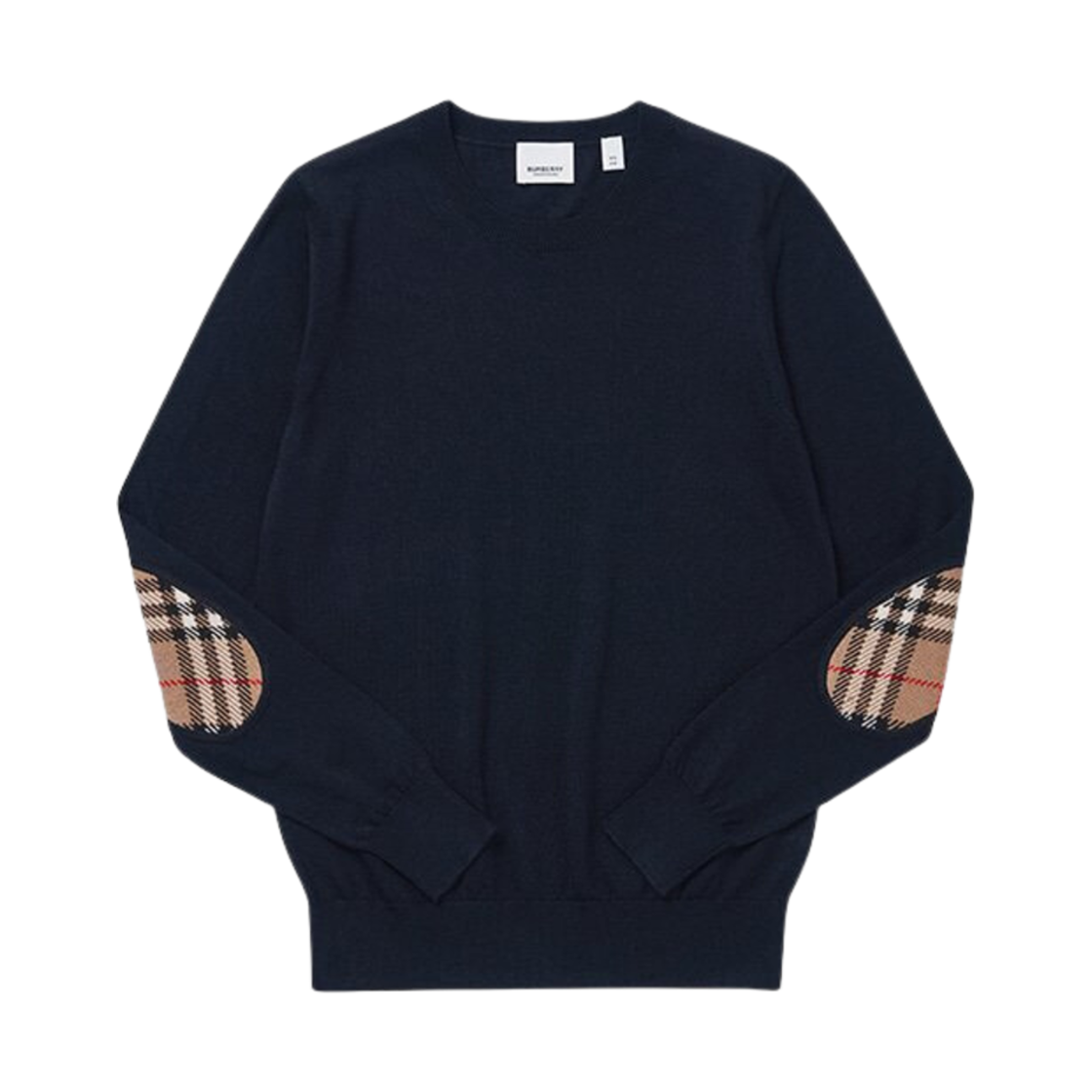 (W) 버버리 뱀프톤 체크 패치 메리노 울 니트 네이비