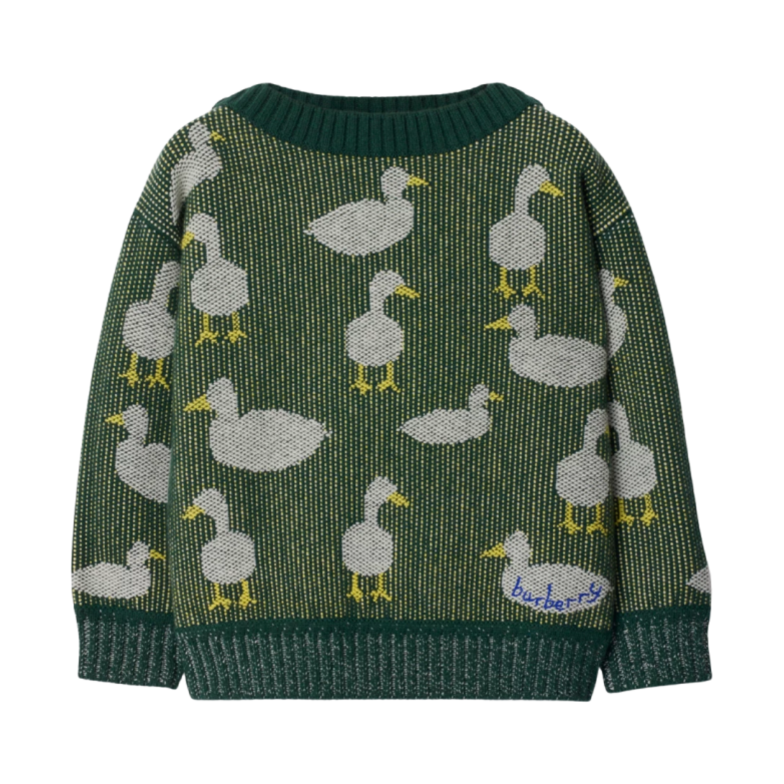 (키즈) 버버리 덕 울 캐시미어 블렌드 스웨터 다크 모스
