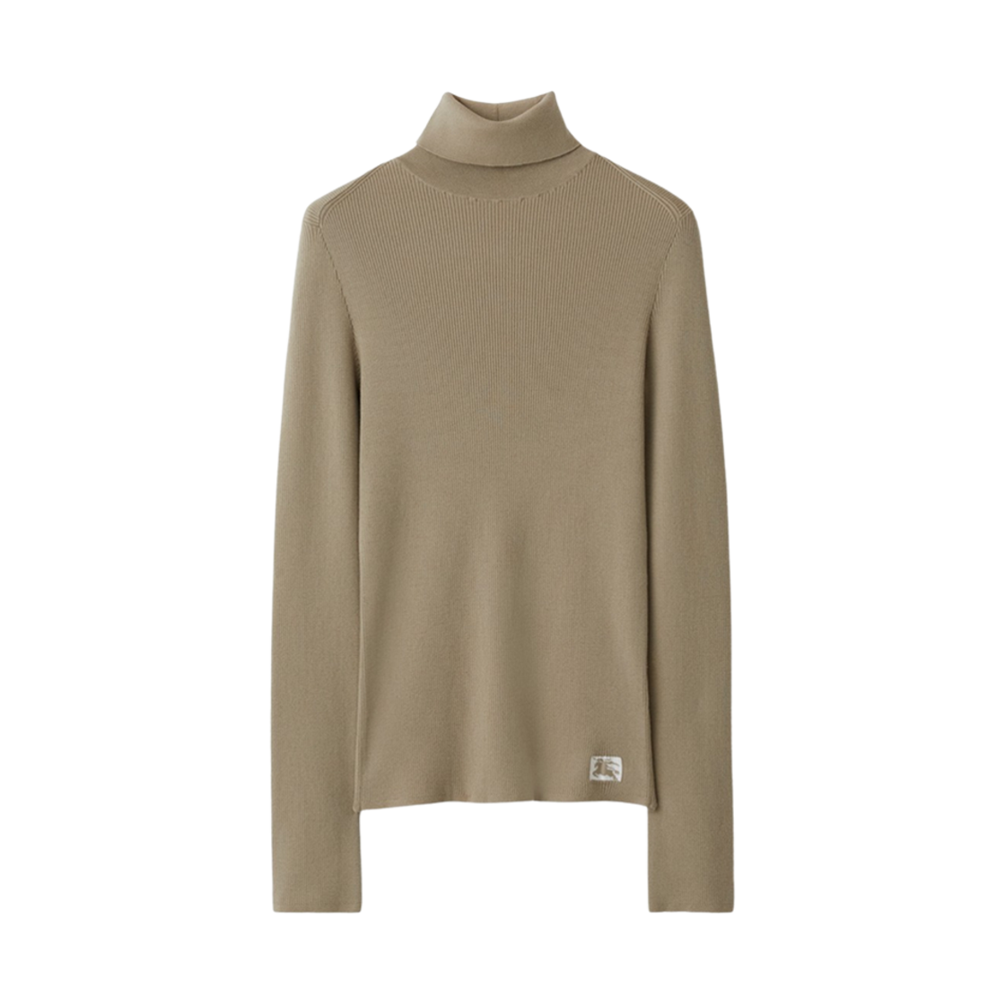 (W) 버버리 모노그램 울 실크 블렌드 니트 폴로 셔츠 카멜