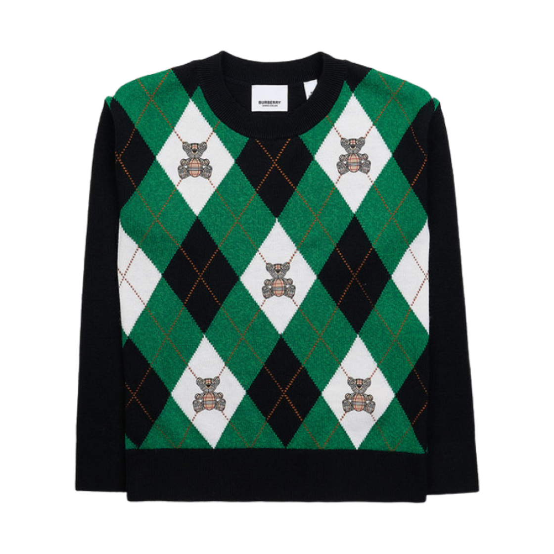 (키즈) 버버리 토마스 베어 아가일 스웨터 퍼 트리 그린
