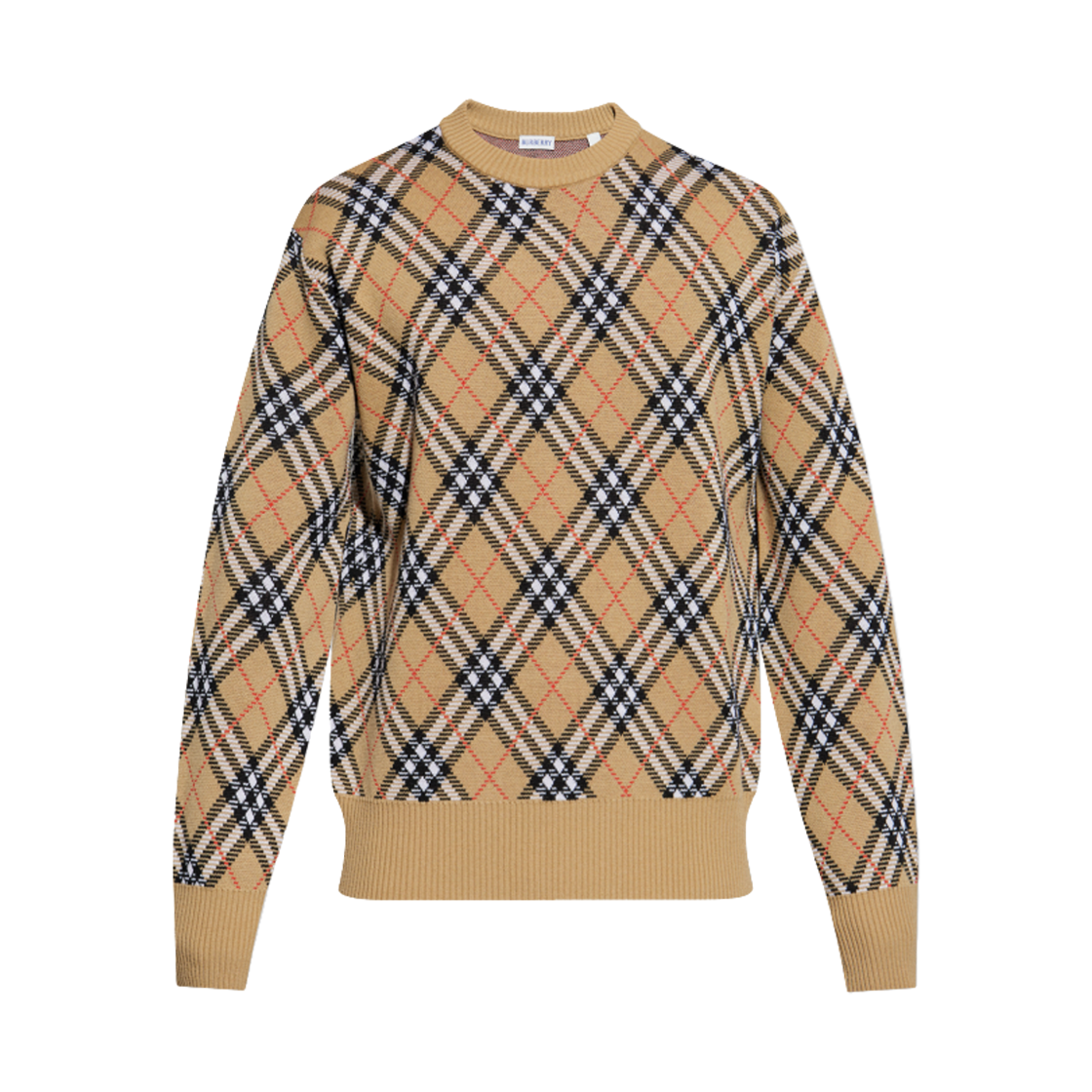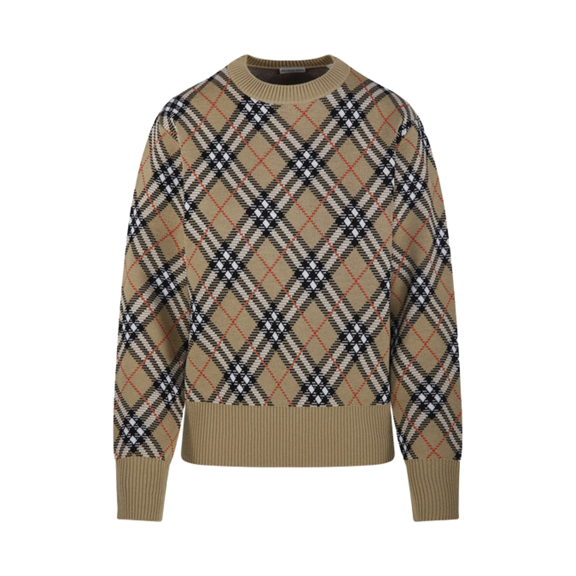 버버리 체크 울 자카드 스웨터 버치 브라운