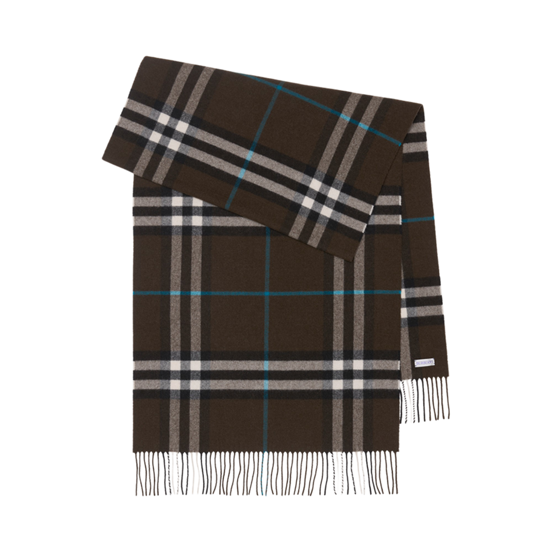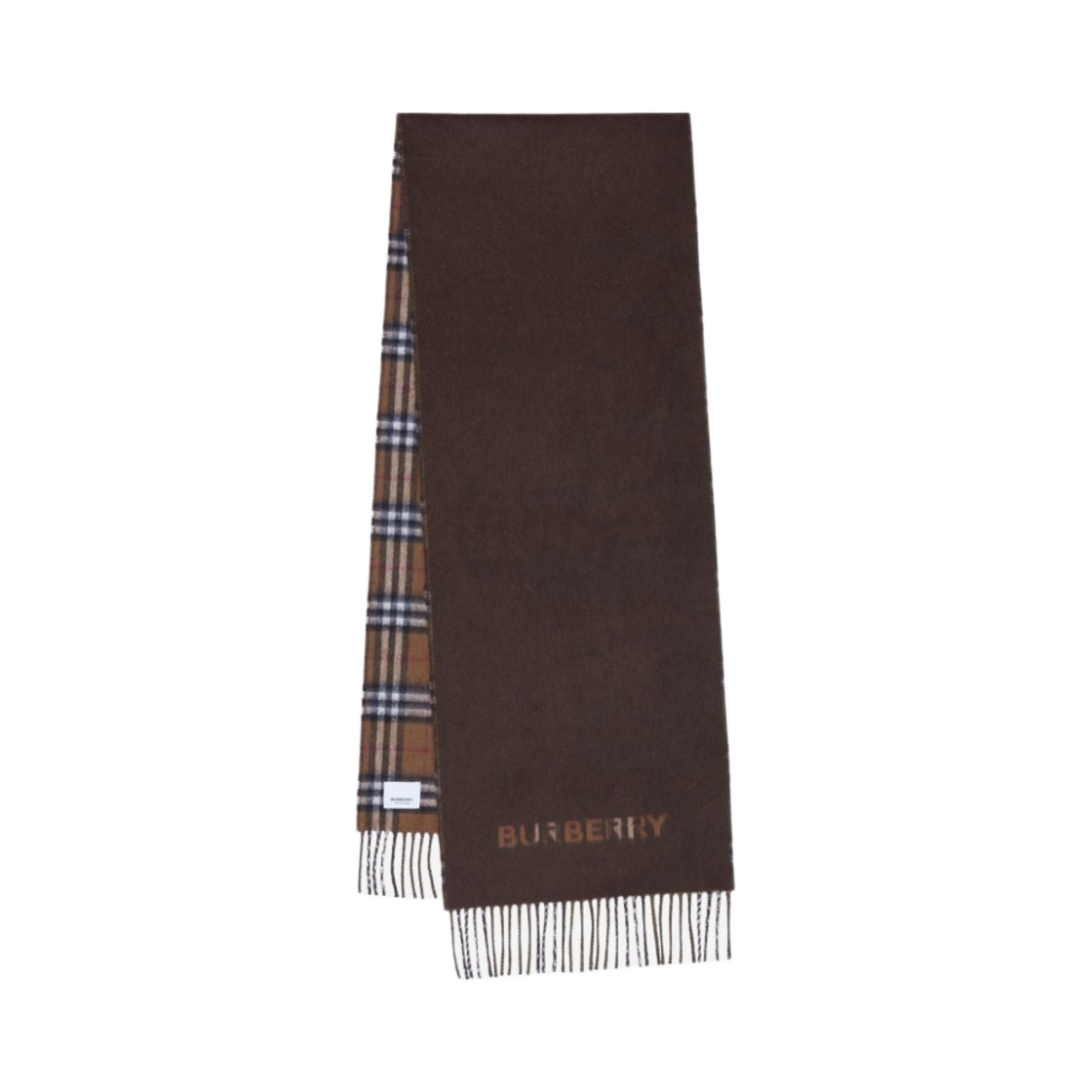 버버리 체크 캐시미어 리버시블 머플러 다크 버치 브라운