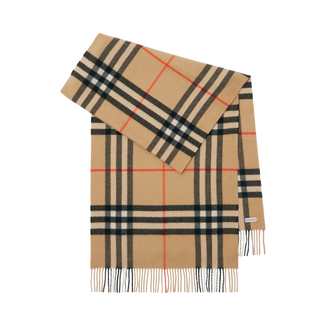 버버리 와이드 체크 캐시미어 머플러 스너그