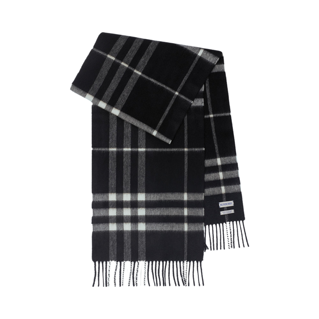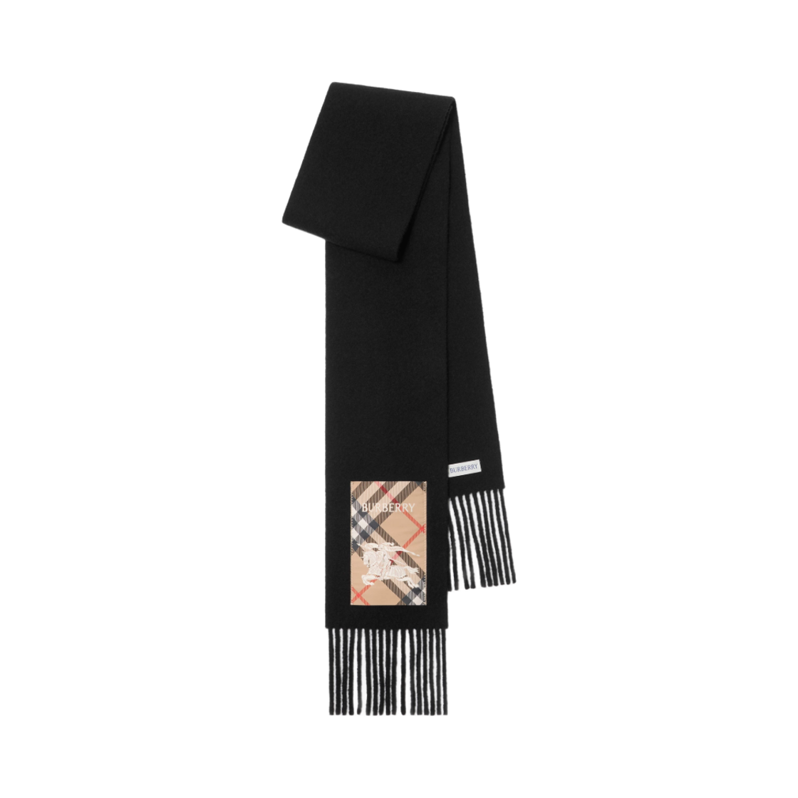 버버리 체크 라벨 캐시미어 머플러 블랙