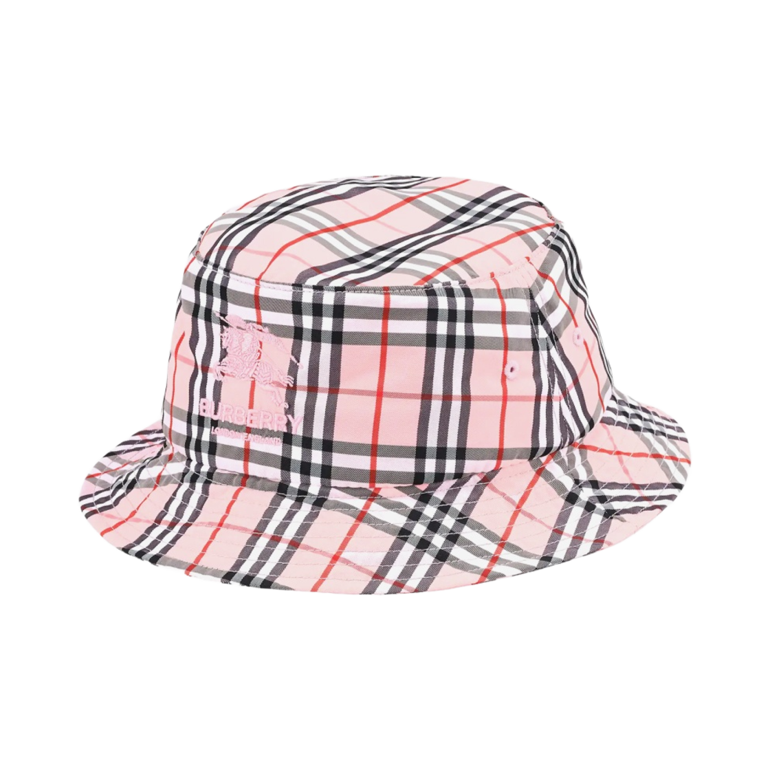 버버리 자수 로고 코튼 버킷햇 레드 에크루