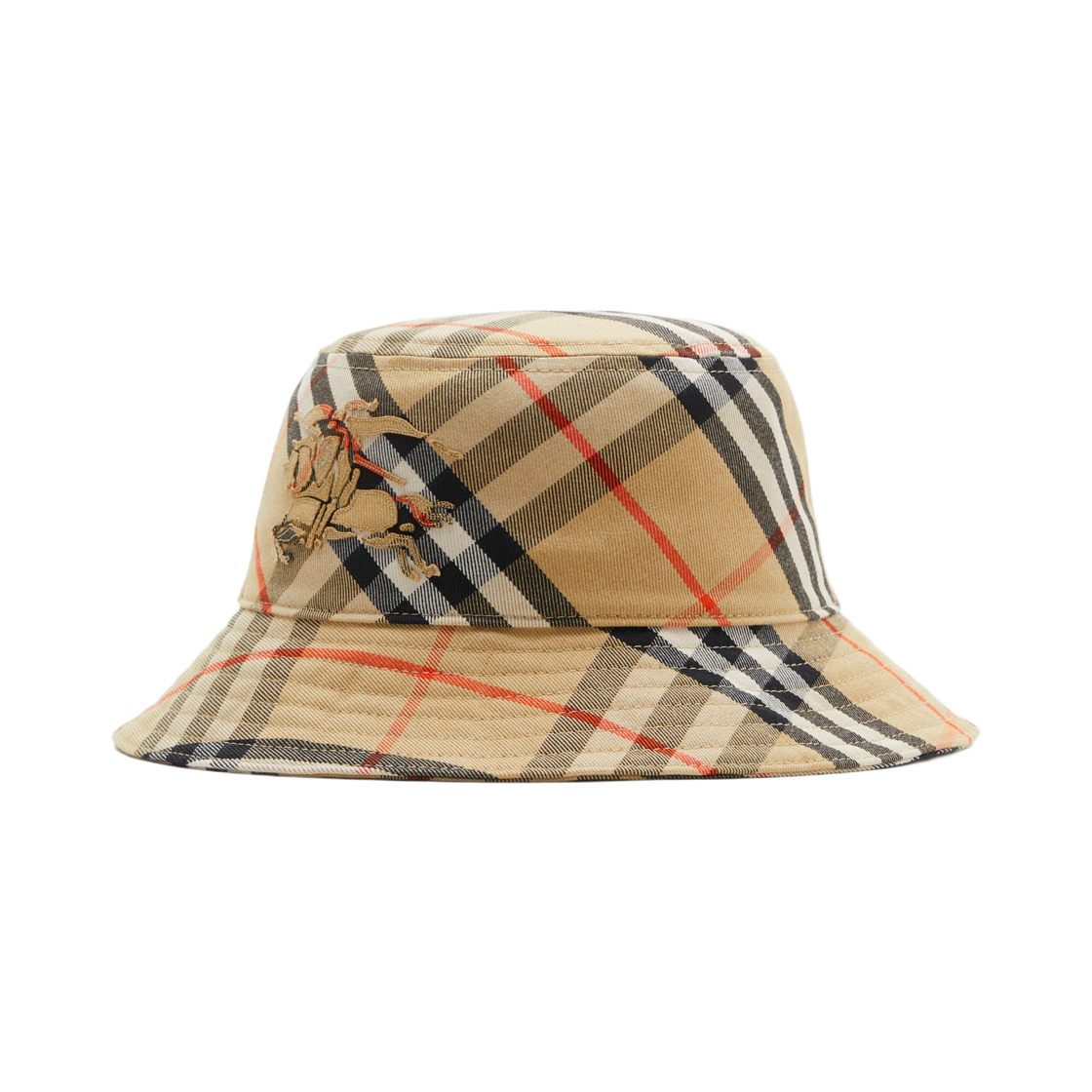 버버리 체크 코튼 캔버스 버킷햇 버치 브라운