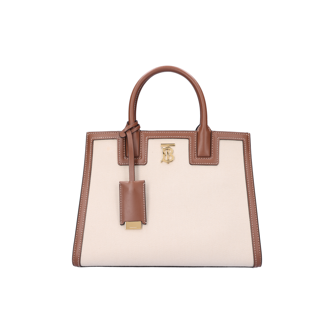 버버리 미니 투톤 캔버스 레더 프레야 토트백 내츄럴 탄