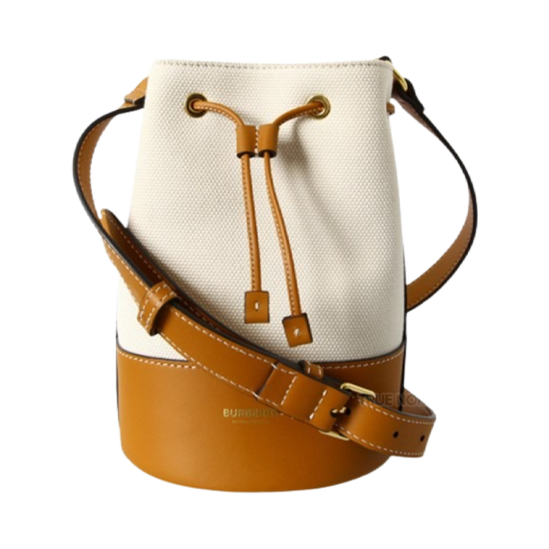 버버리 드로스트링 캔버스 미니 버킷백 아이보리 카멜