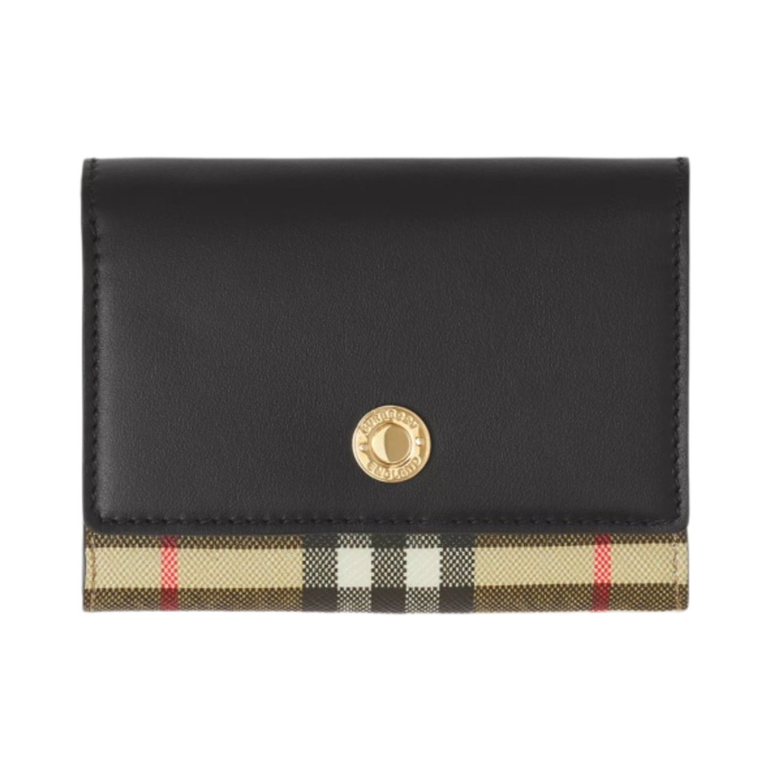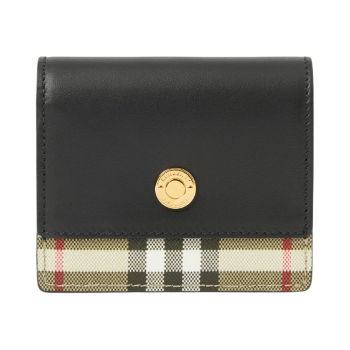 버버리 스몰 빈티지 체크 레더 폴딩 지갑 블랙 베이지