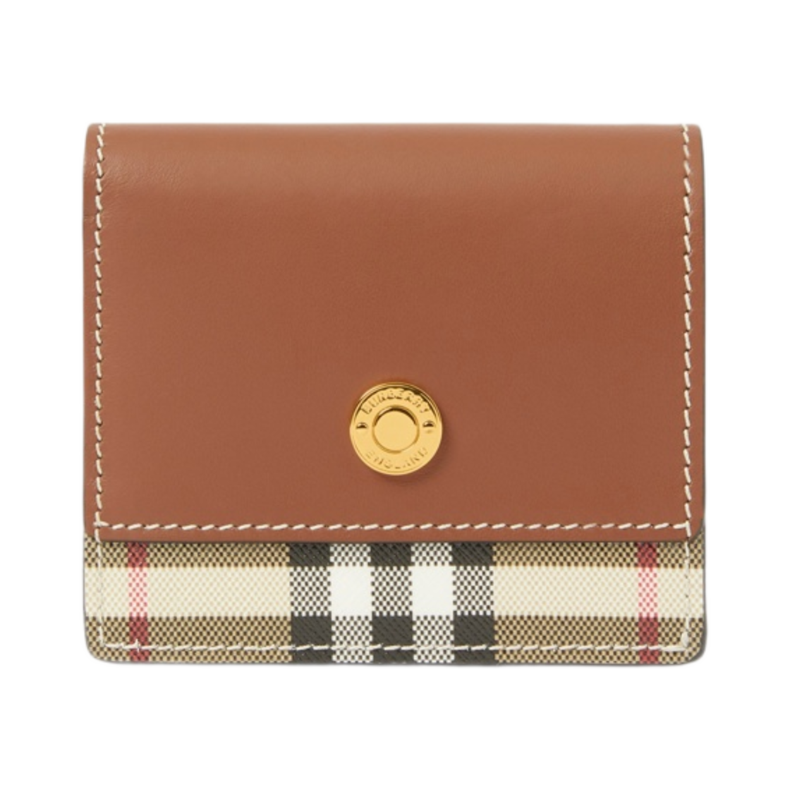 버버리 스몰 빈티지 체크 레더 폴딩 지갑 아카이브 베이지 탄