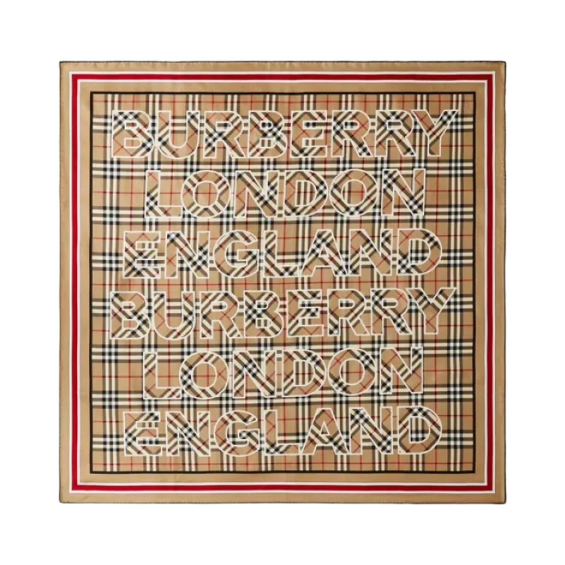 (W) 버버리 빈티지 체크 로고 프린트 실크 스퀘어 스카프 아카이브 베이지