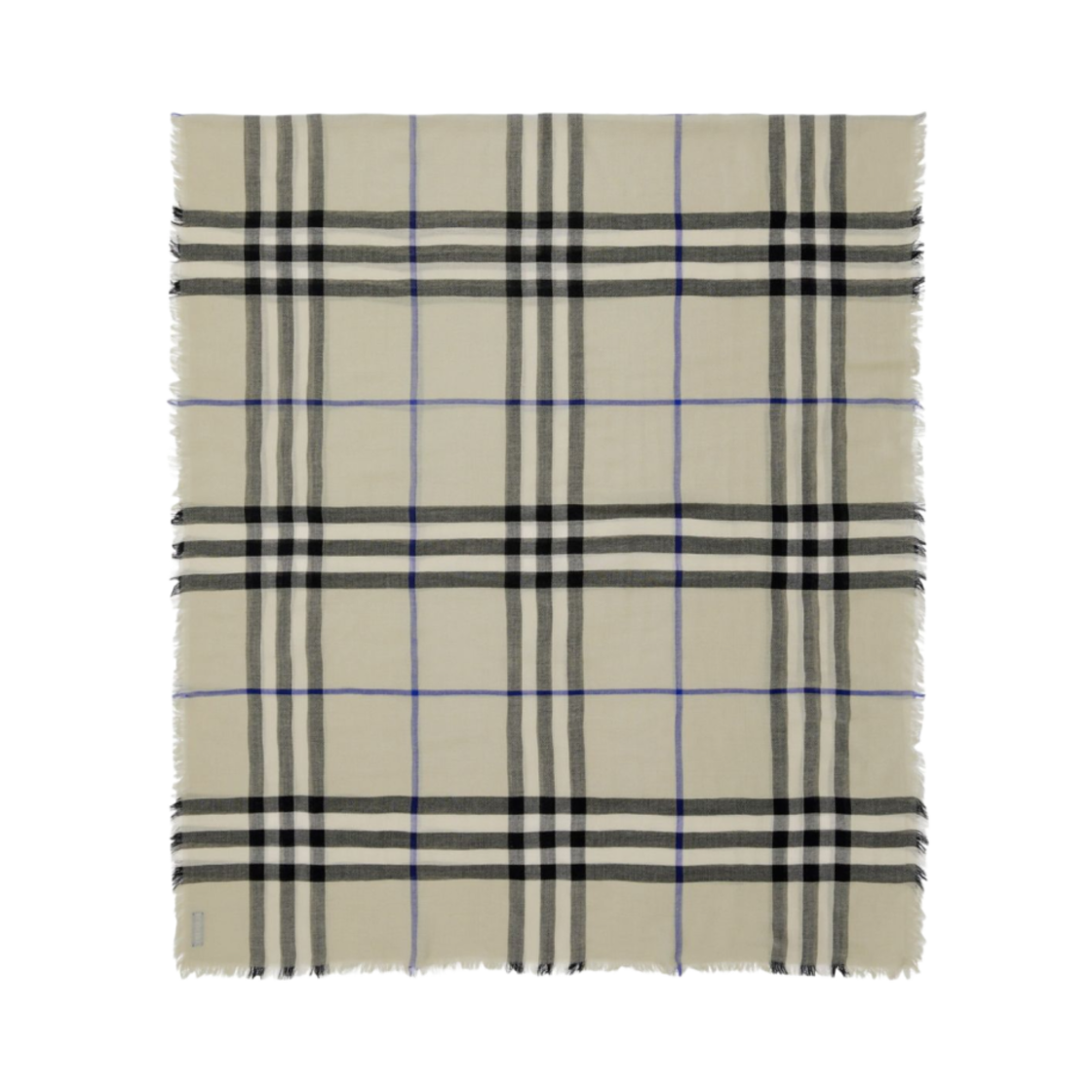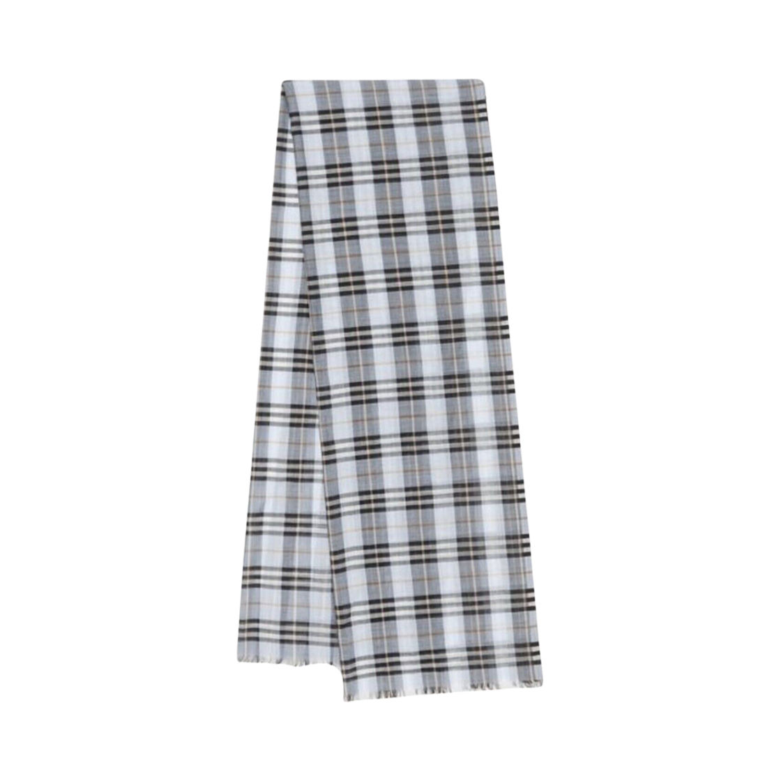 버버리 빈티지 체크 라이트웨이트 울 실크 스카프 페일 블루