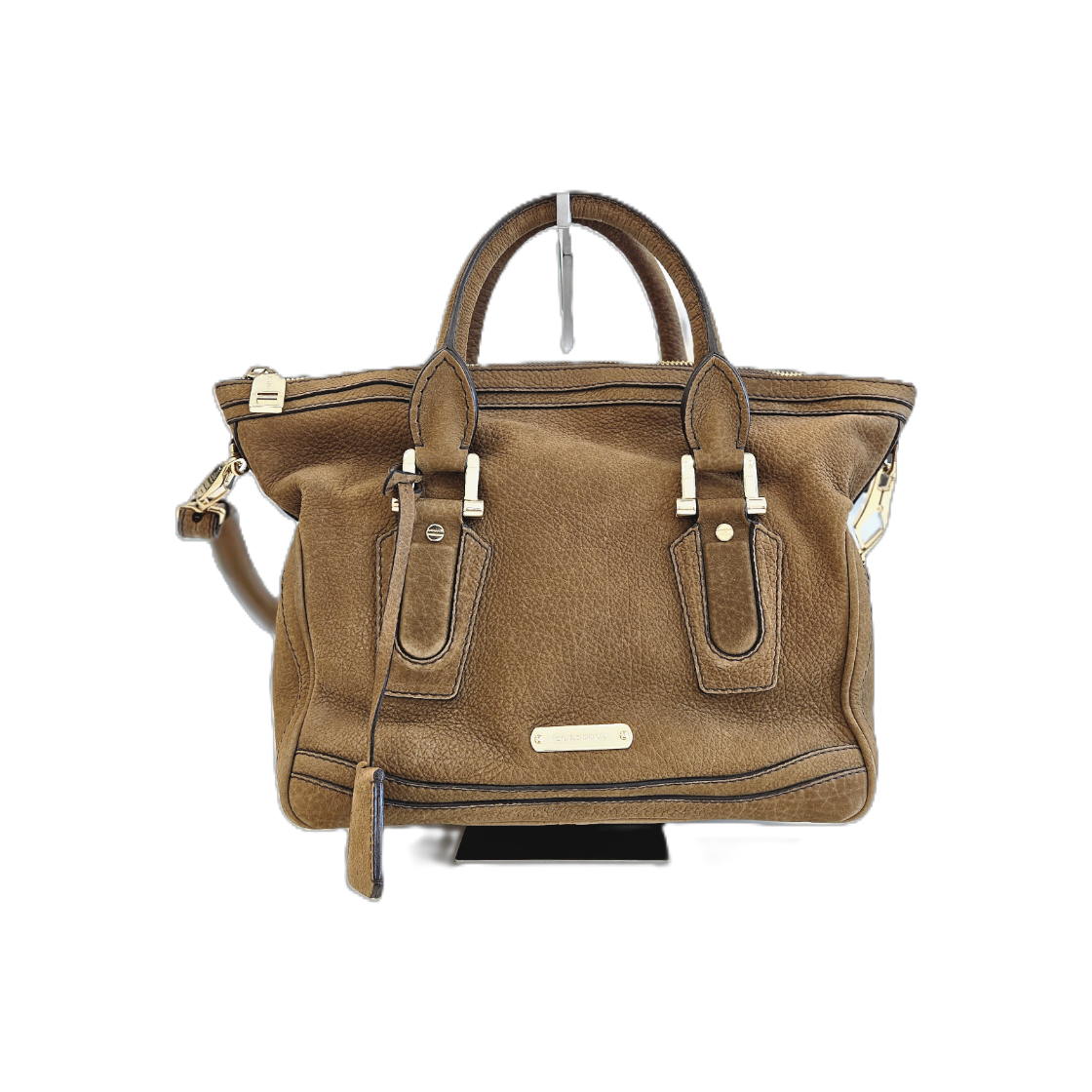 버버리 브라운 레더 금장 로고 장식 토트겸 숄더백