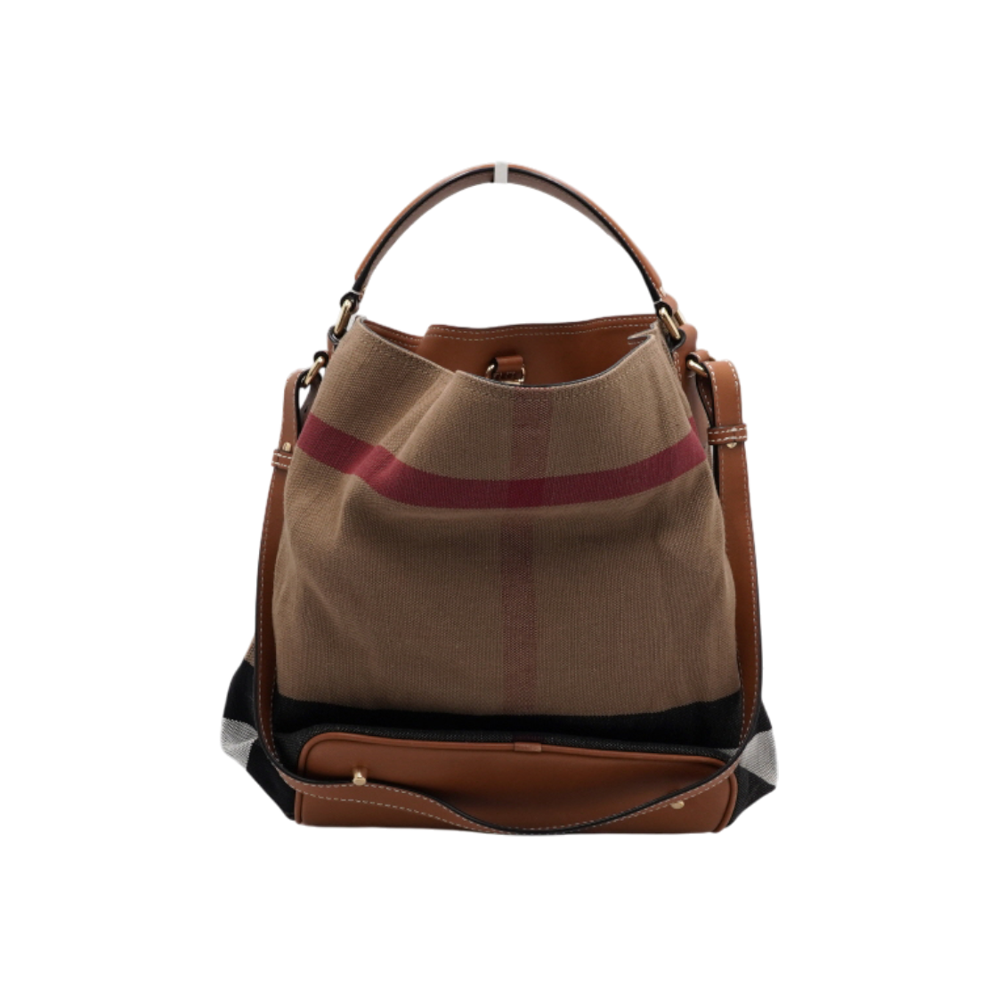 버버리 8084045 브라운 체크 캔버스 스몰 버킷 숄더백 겸 크로스백aa58885