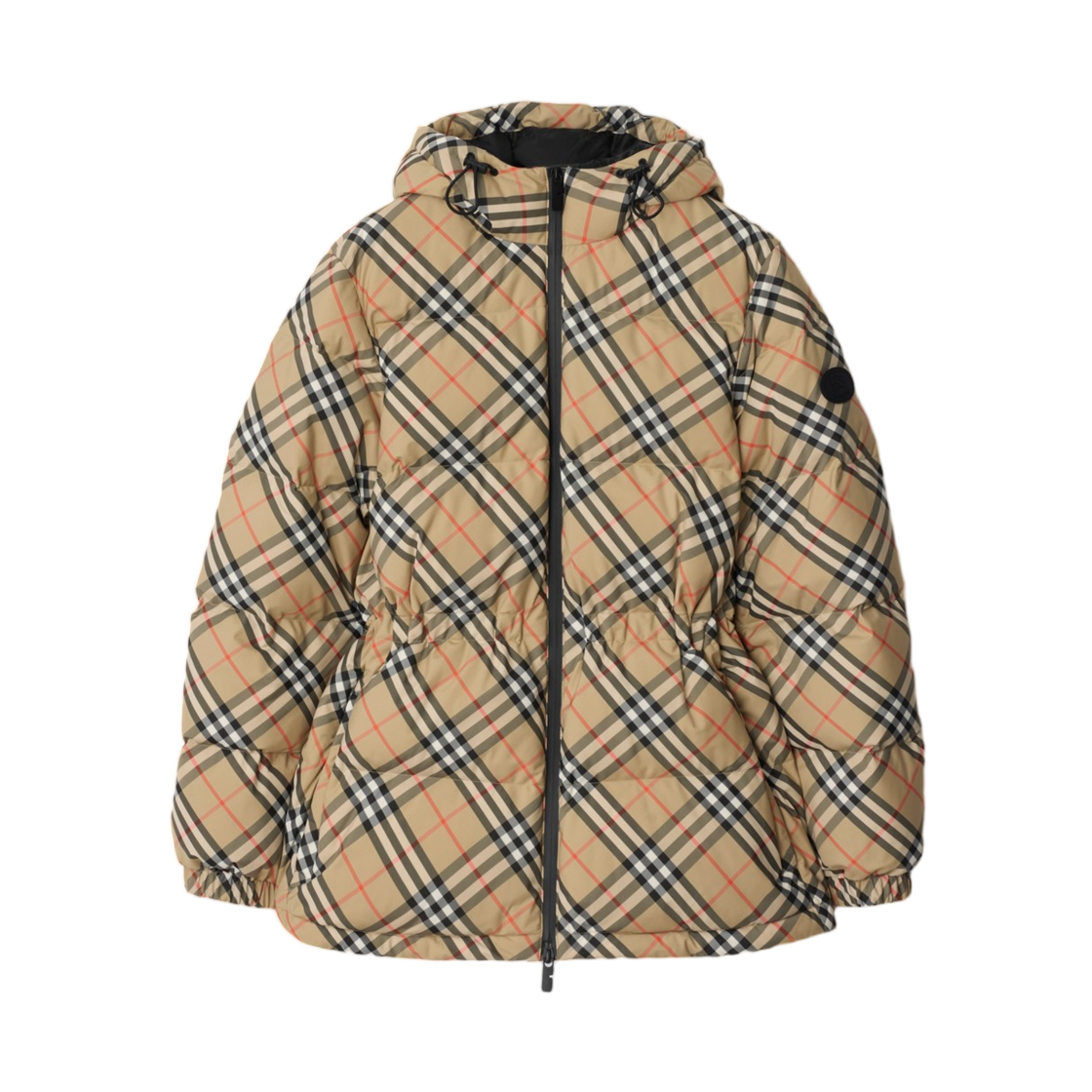 (W) 버버리 체크 나일론 후드 퍼퍼 자켓 샌드 베이지
