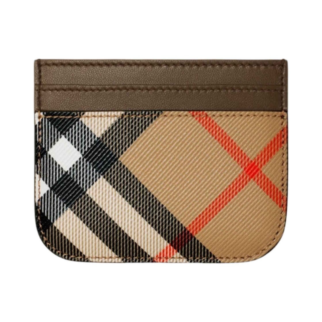 버버리 체크 레더 카드 케이스 다크 버치 브라운
