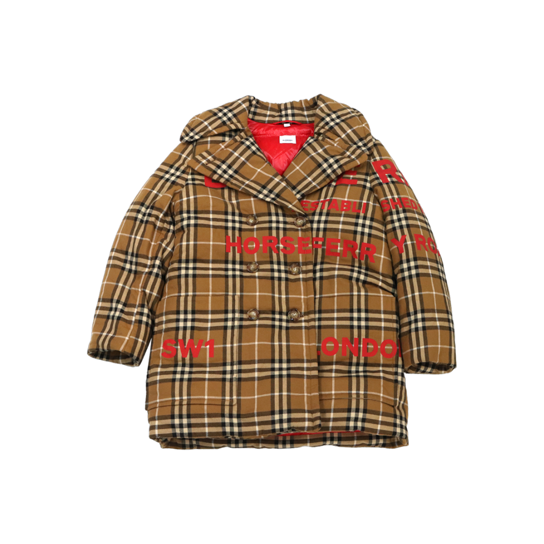 (키즈) 버버리 다이아몬드 퀼티드 나일론 후드 코트 블랙