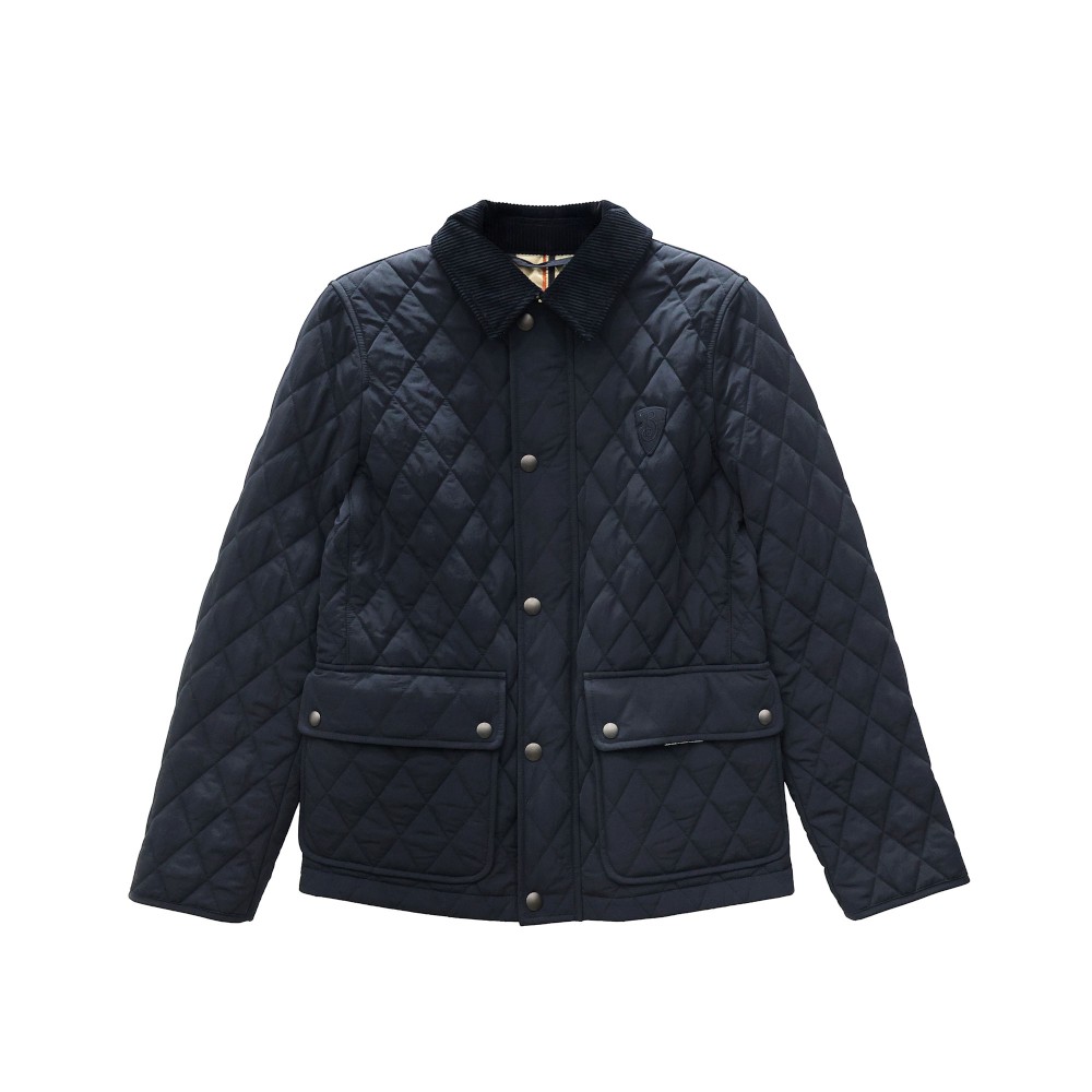 (키즈) 버버리 코듀로이 디테일 다이아몬드 퀼티드 자켓 블랙