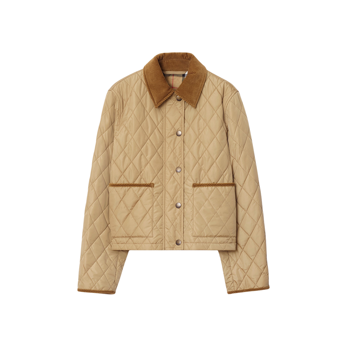 (W) 버버리 코듀로이 칼라 다이아몬드 퀼티드 반 자켓 소프트 펀