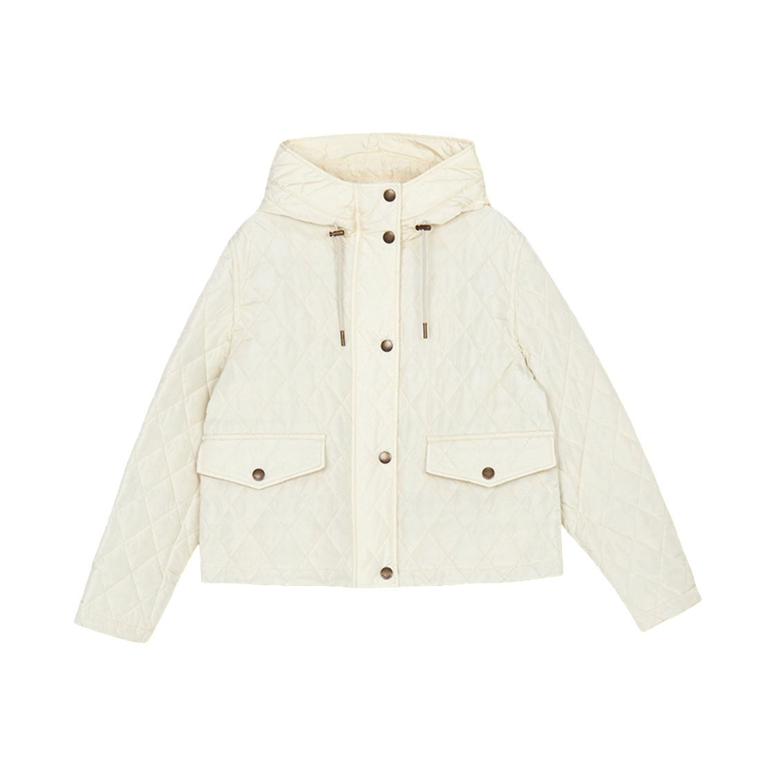 (W) 버버리 팸브룩 크롭 후드 퀼팅 자켓 아이보리