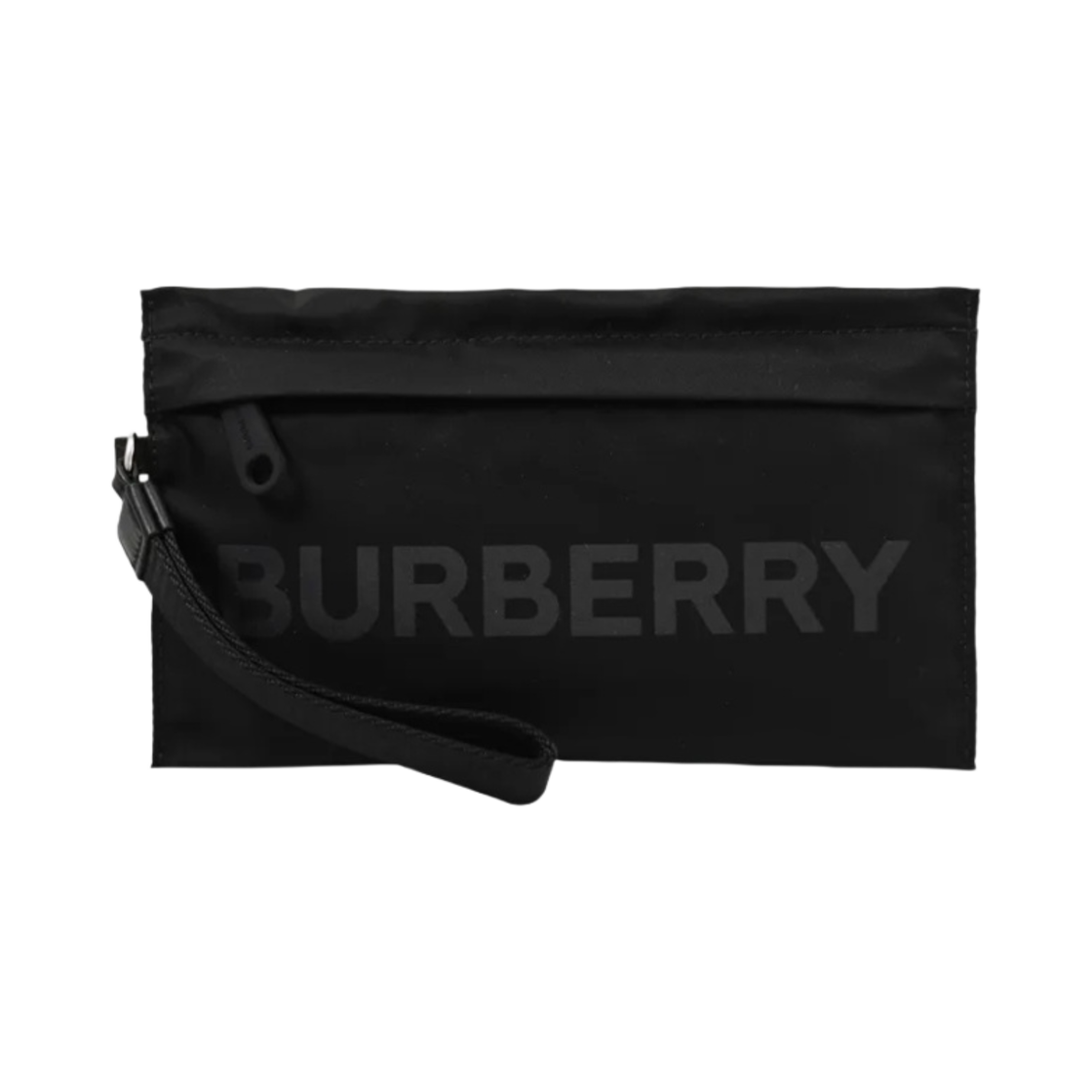 버버리 로고 프린트 나일론 지퍼 파우치 블랙