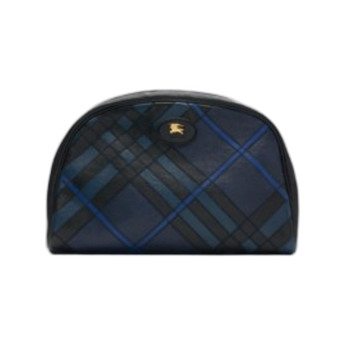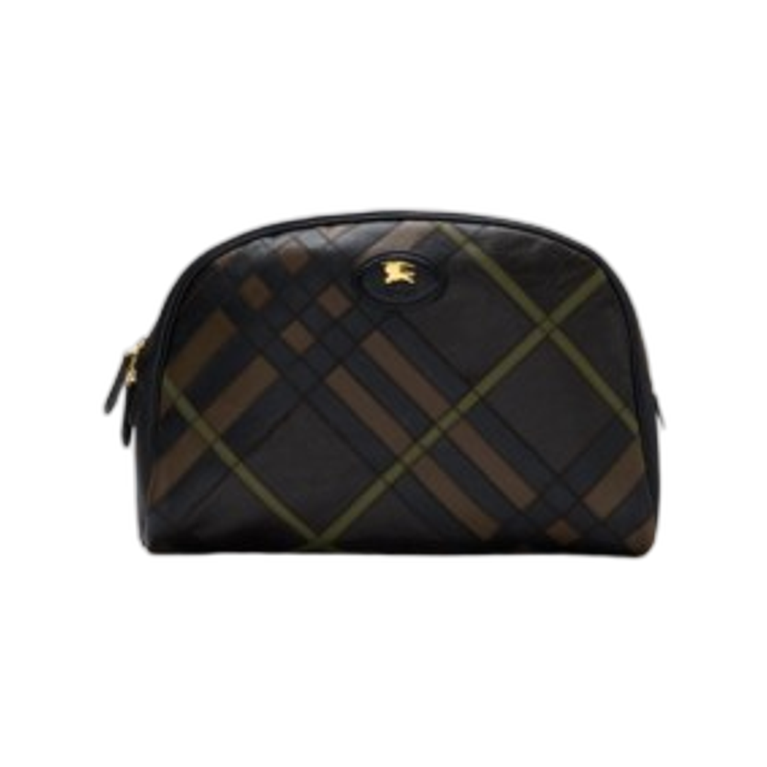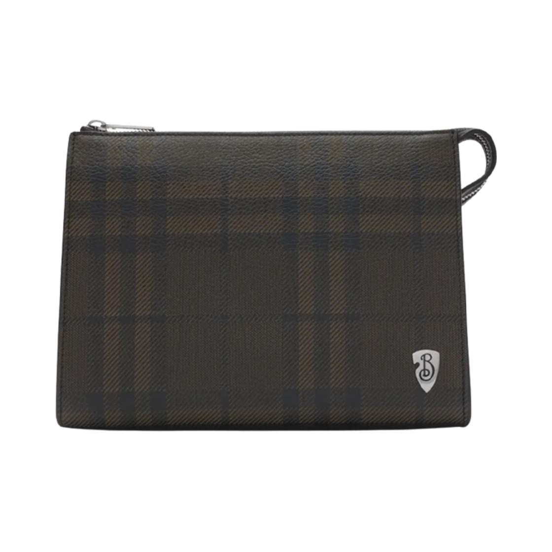 버버리 체크 레더 지퍼 파우치 다크 버치 브라운