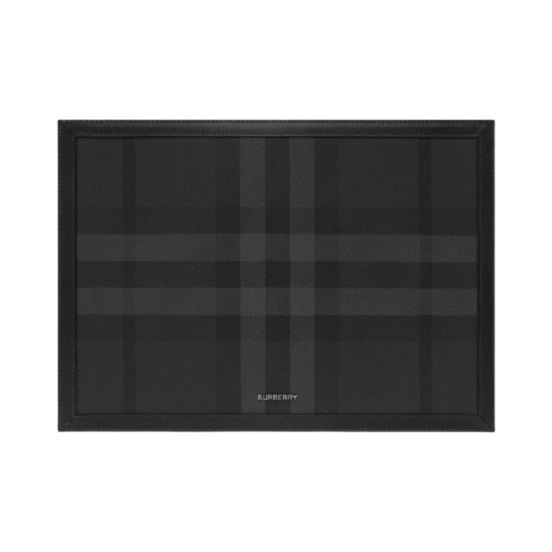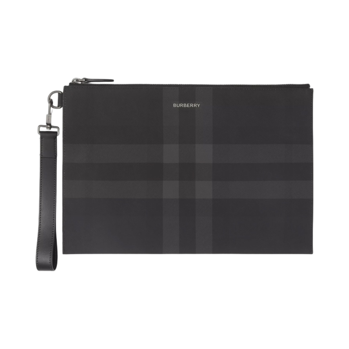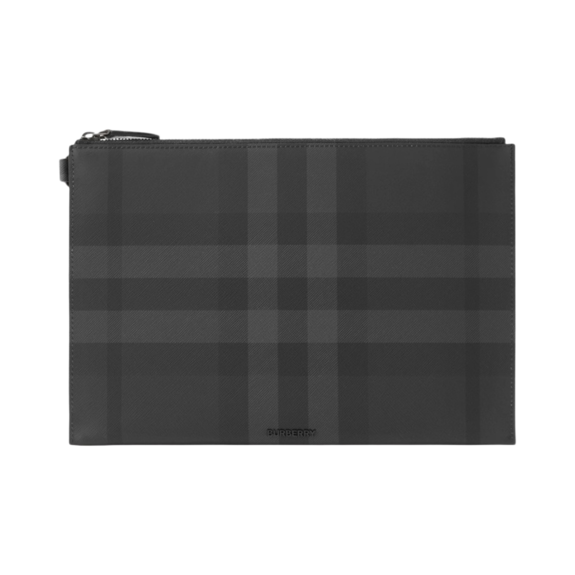 버버리 체크 레더 지퍼 파우치 다크 버치 브라운