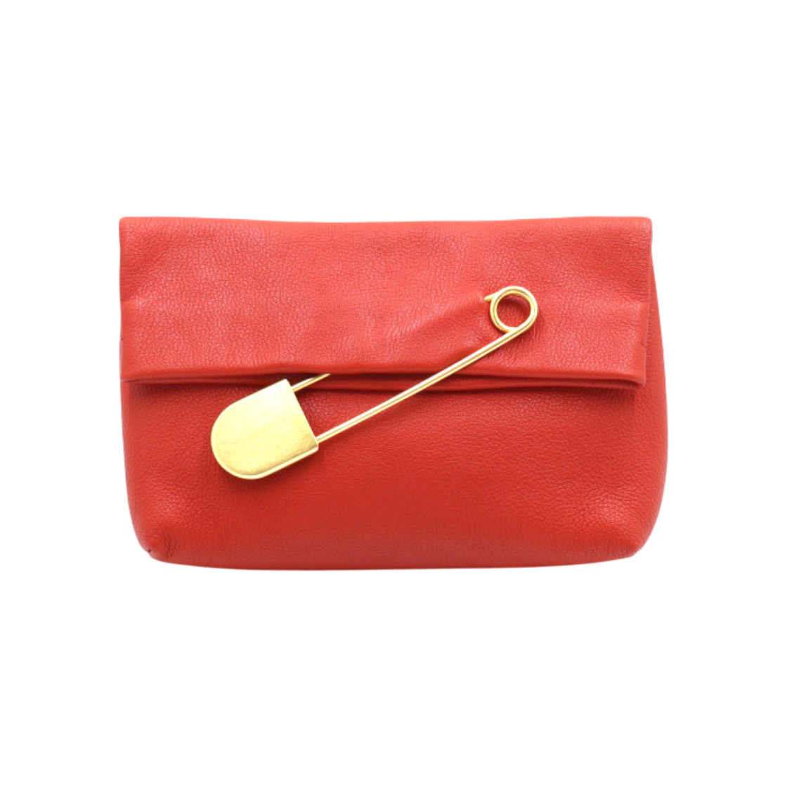 버버리 4075931 레드 레더 핀 미듐 파우치 클러치백 aa50267