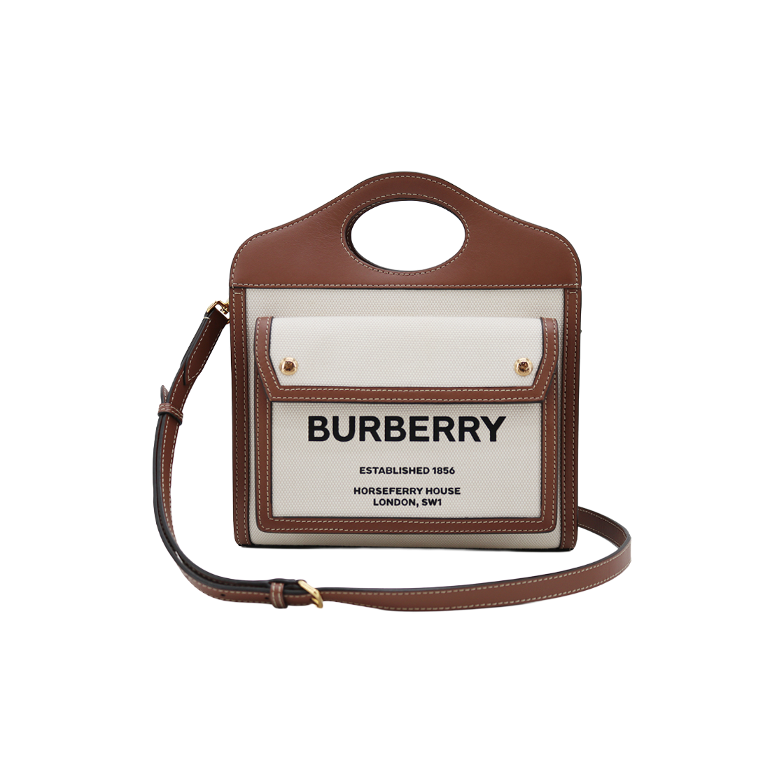 버버리 미니 투톤 캔버스 레더 프레야 토트백 내츄럴 탄