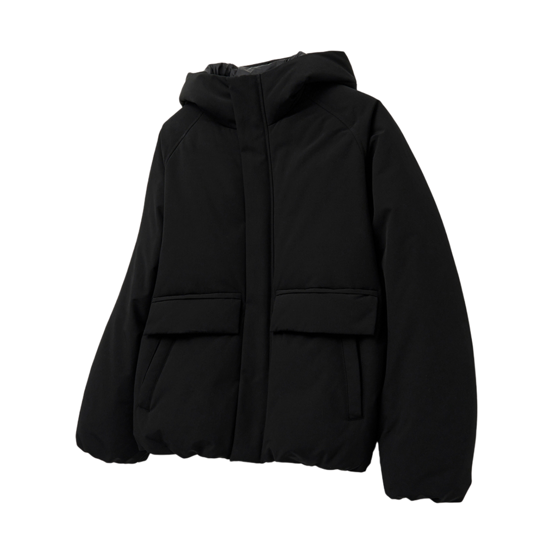 티엔지티 블랙 유러피언 구스 벌룬핏 후드 헤비 다운 점퍼