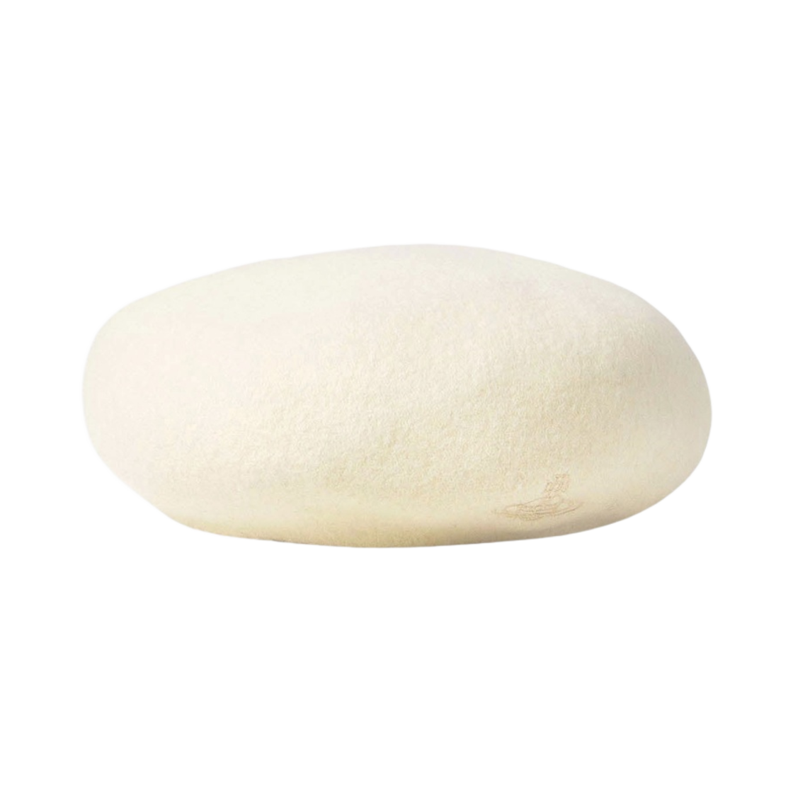 (W) 비비안 웨스트우드 라인 Orb 자수 바스크 베레모 오프 화이트
