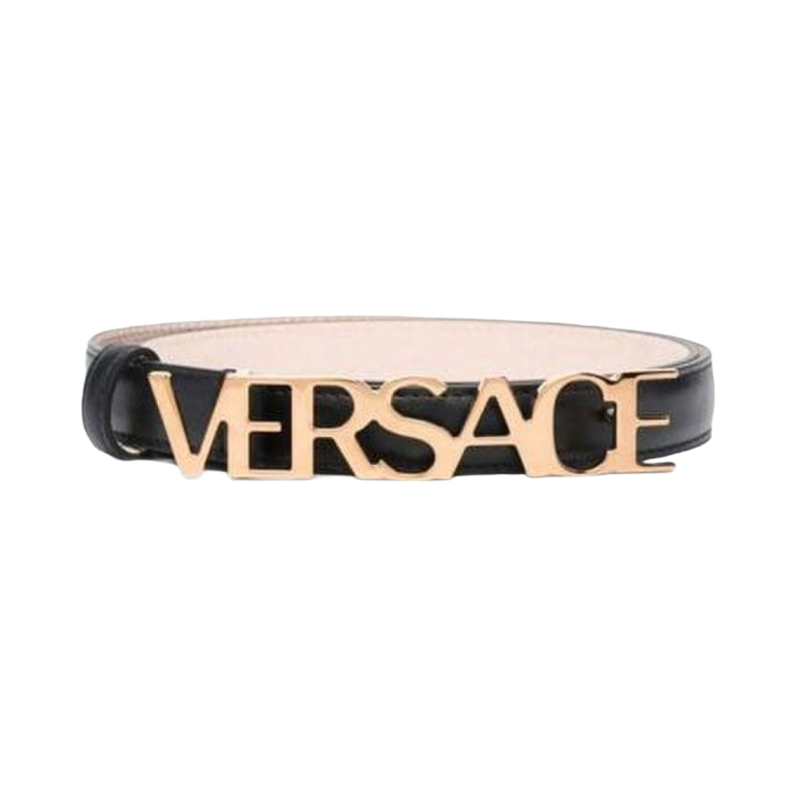 (W) 베르사체 로고 씬 레더 벨트 블랙 골드