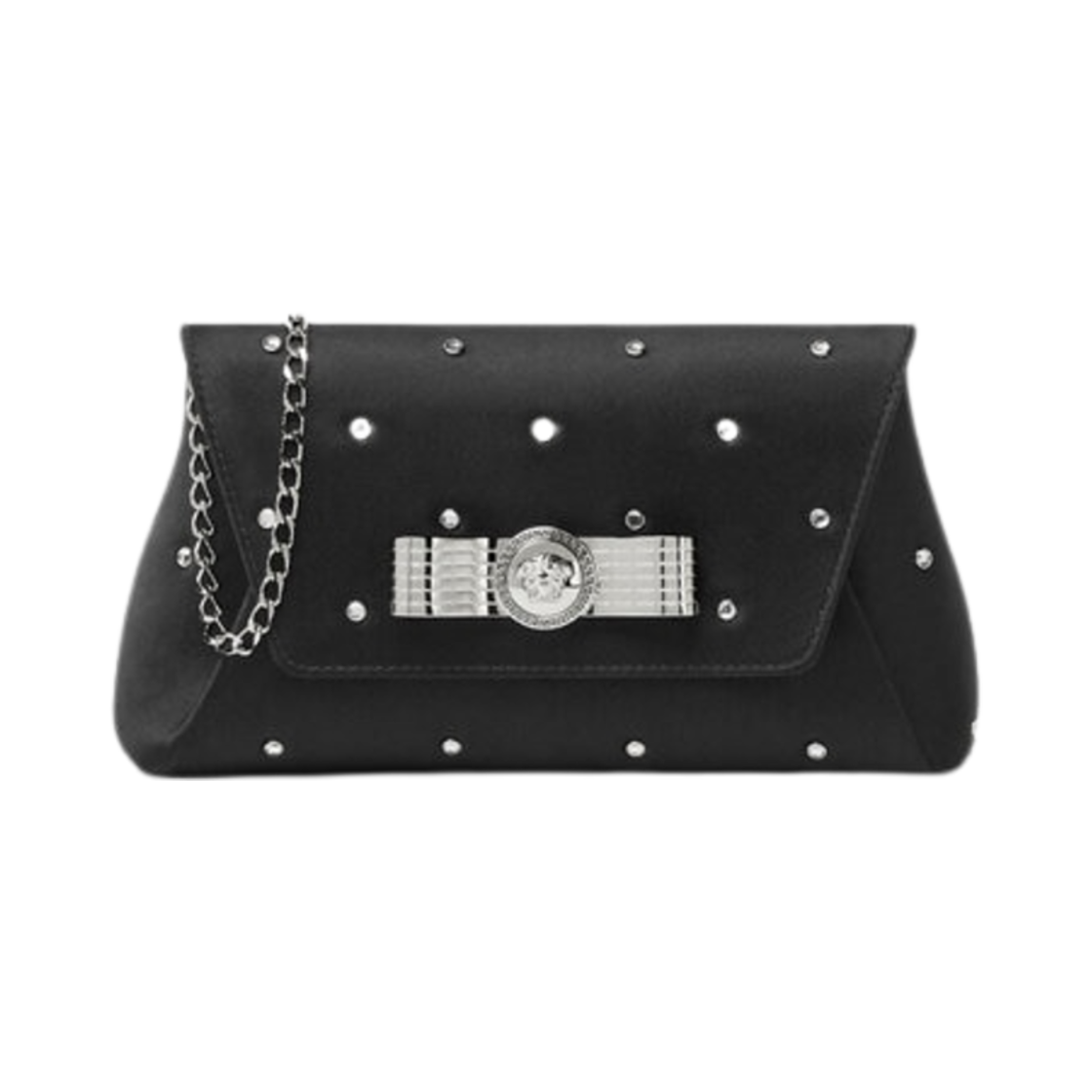 베르사체 지아니 리본 크리스탈 클러치 블랙 실버