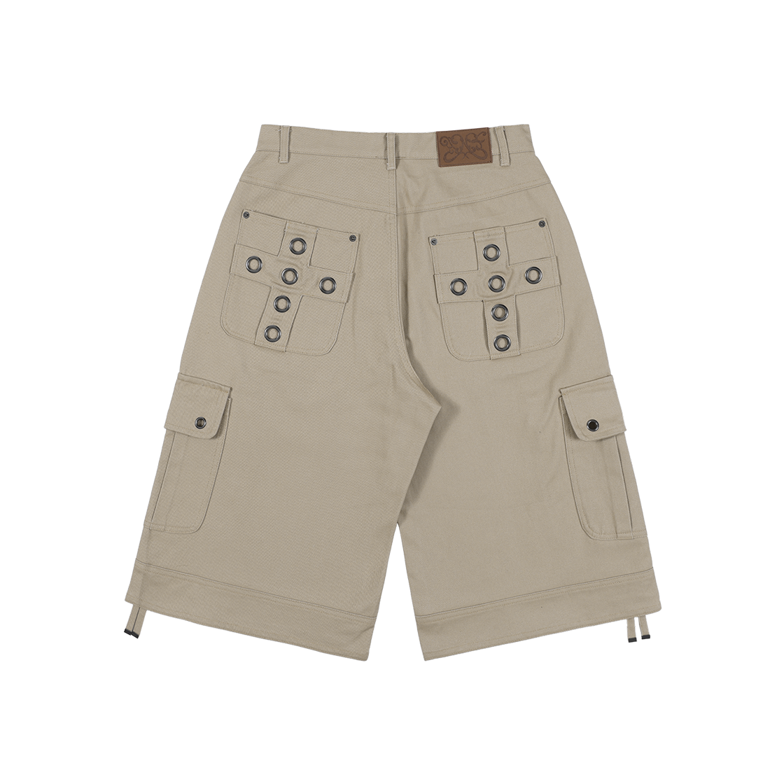 팬시클럽 크로스 포켓 버뮤다 팬츠 베이지