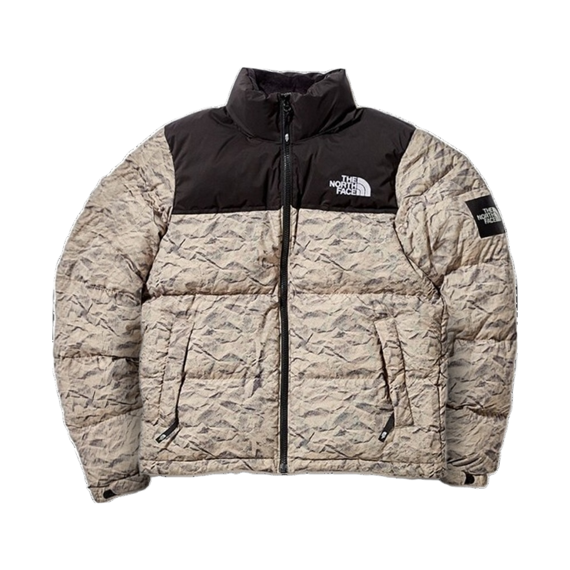 노스페이스 화이트 라벨 노벨티 눕시 다운 자켓 프린트 다크 베이지