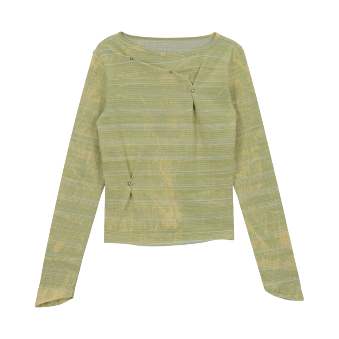 베이컨트 아카이브 리나 보트넥 버튼 롱슬리브 탑 카키