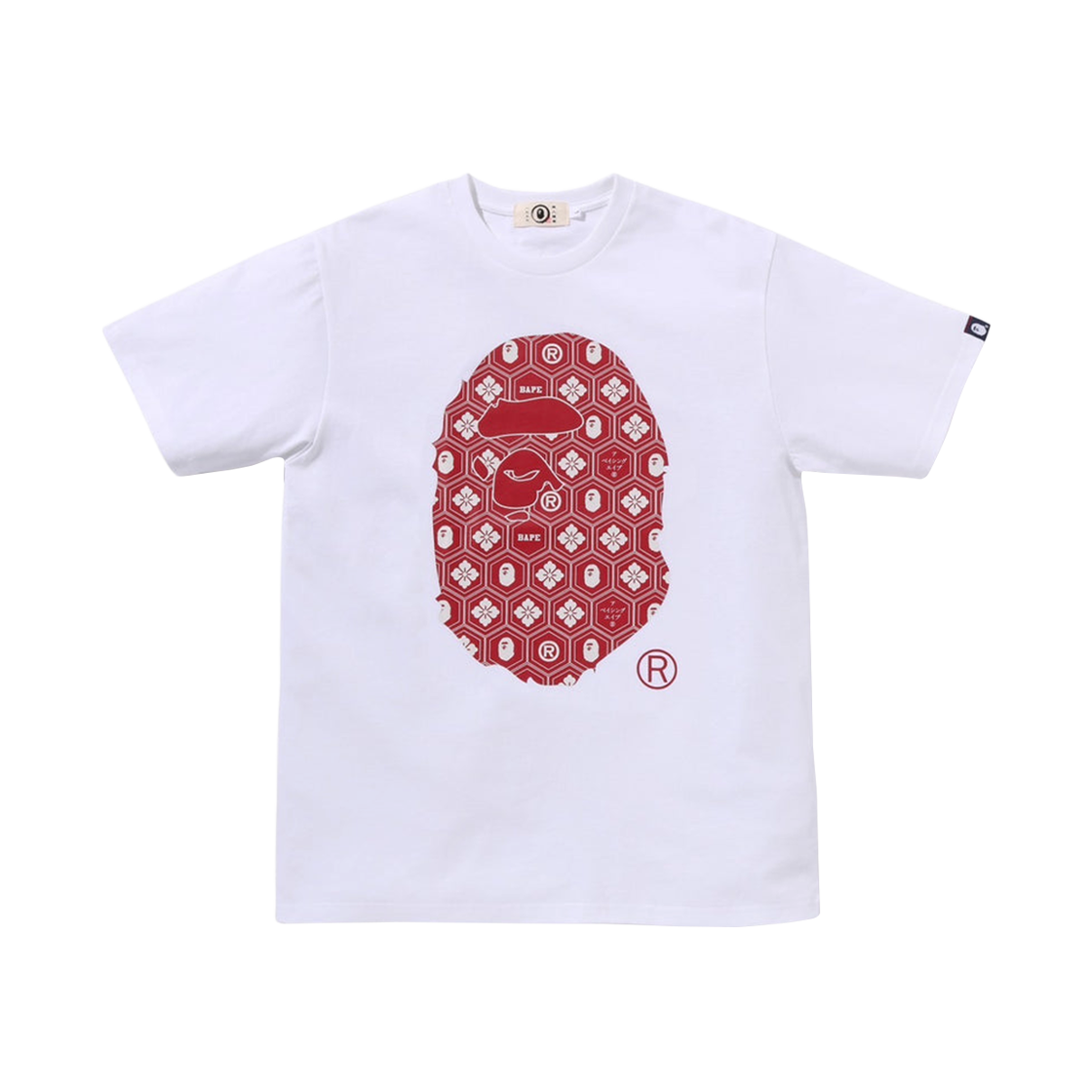베이프 트레디셔널 재패니즈 패턴 에이프 헤드 티셔츠 화이트 레드