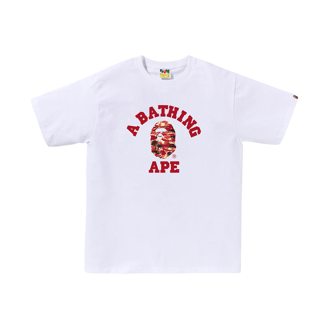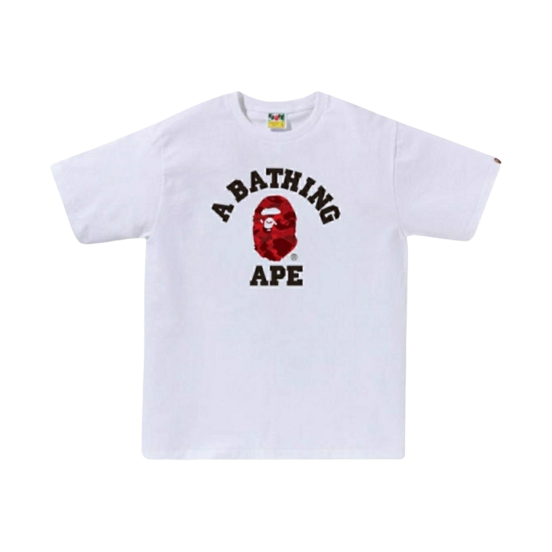 베이프 카모 컬리지 티셔츠 화이트 레드
