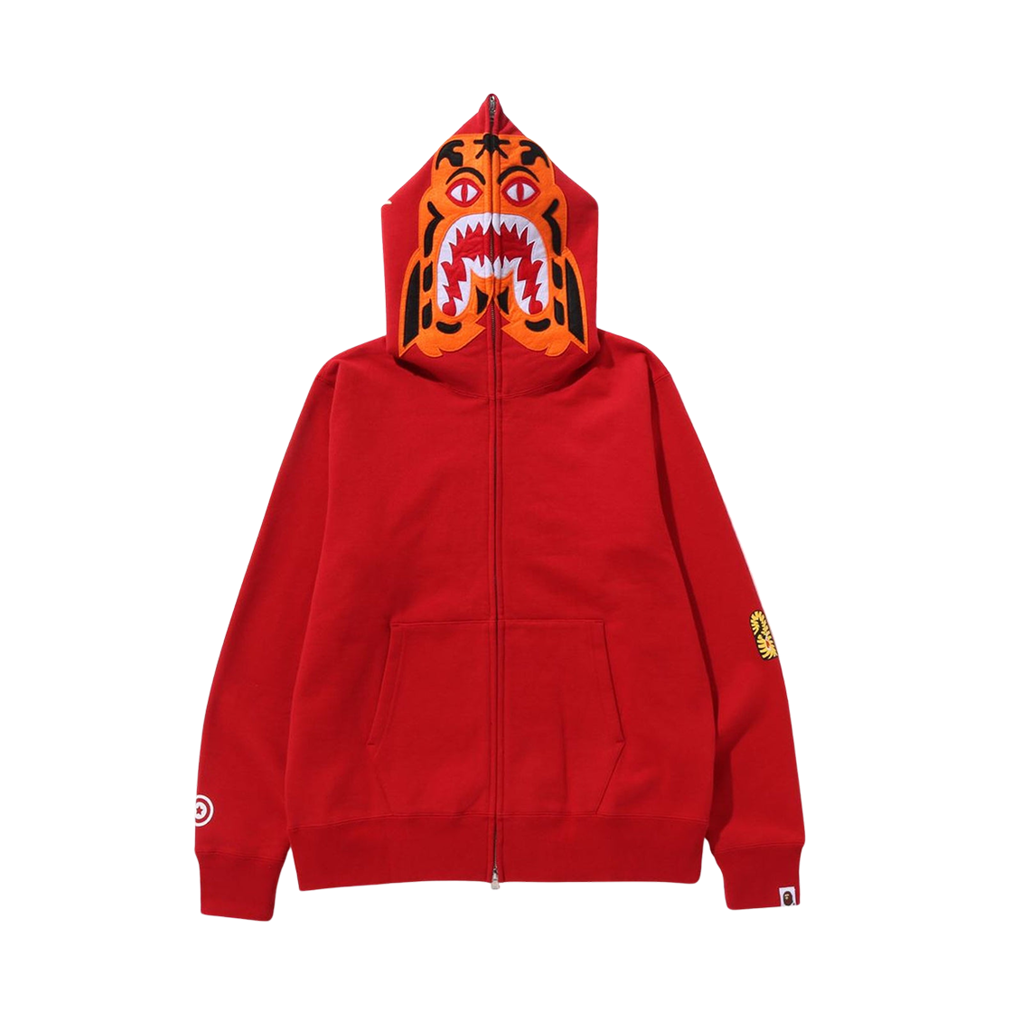 베이프 컬러 카모 더블 샤크 풀 집 후드 브라이트 레드